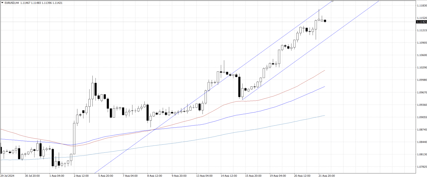 The EUR/USD rose for the fourth day in a row, reaching a new 2024 high around 1.1170, a move largely driven by the continued weakness of the US dollar (USD). The dollar index (DXY) broke below 101.00, a key support level since December 2023. The release of minutes from the US Federal Reserve's July meeting, which showed the central bank was likely to cut interest rates in September, further bolstered market expectations of a weaker dollar.