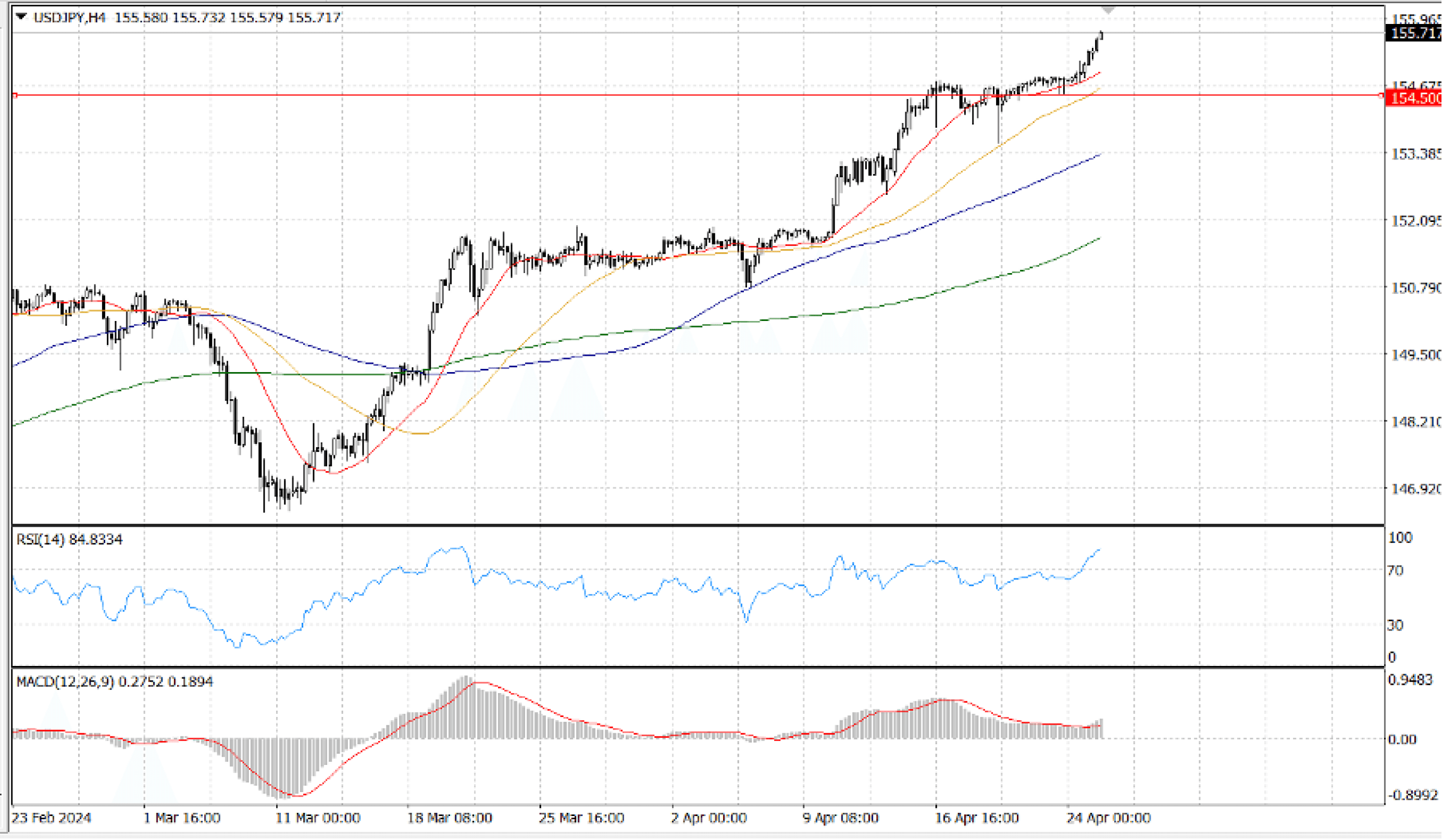 After hiking interest rates in March for the first time since 2007, it is generally anticipated that the Japanese central bank will maintain its current policy settings and the number of bonds it purchases. On the other hand, given sticky inflation, investors appear to be convinced that the Federal Reserve will not start its cycle of rate-cutting before September. Consequently, this implies that the USD/JPY pair's path of least resistance is upward.