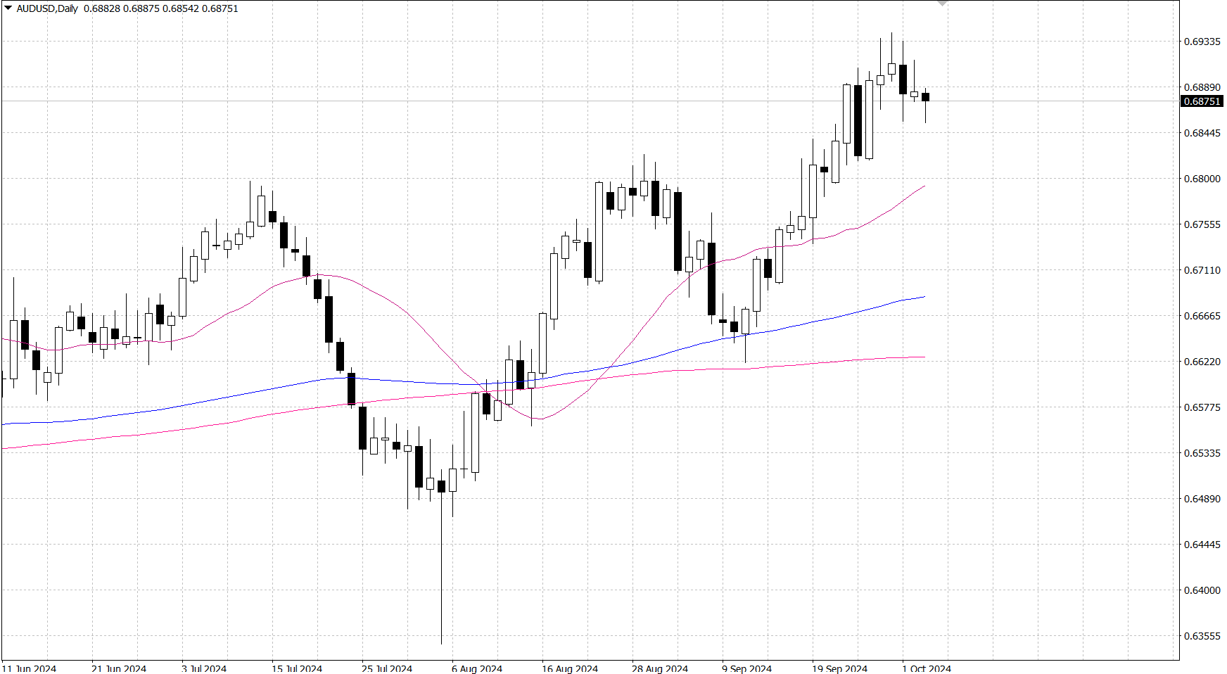The Australian dollar has come under pressure this week as rising global geopolitical tensions and conflict in the Middle East have led to heightened risk aversion in markets. The Israeli security cabinet preparing a strong response after Iran fired a ballistic missile at Israel cooled market risk sentiment, weighing on the risk-sensitive Australian dollar. In addition, the ADP employment report released by the US side showed a strong job market, with 143,000 jobs added in September, which was higher than expected, which further strengthened the strength of the US dollar and pressured the Australian dollar.