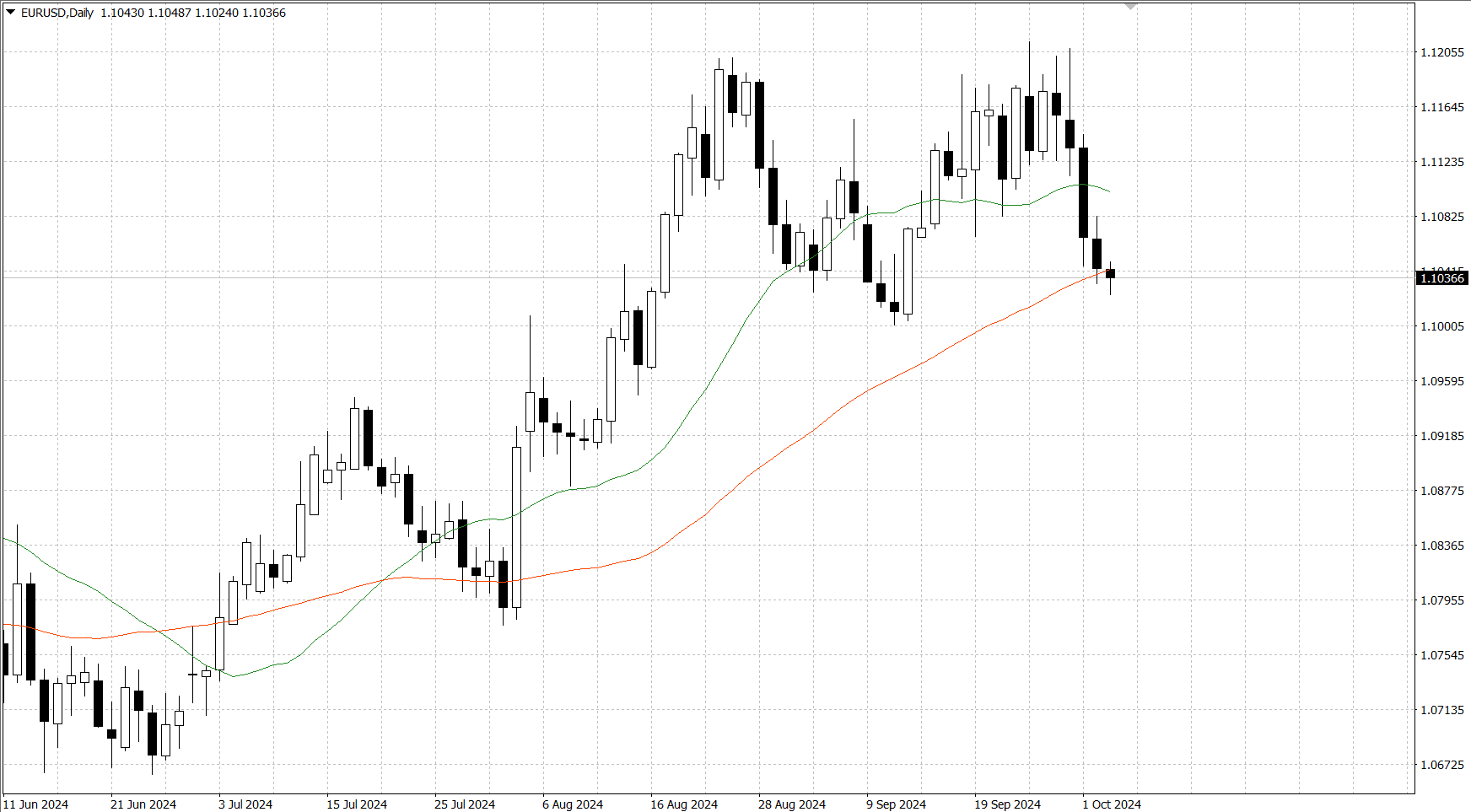 This week, the EUR/USD fell for the fifth day in a row, mainly under strong buying pressure from the US dollar. A number of factors have come together to strengthen the dollar, including the solid performance of the US Labour market. The JOLTS job openings data released this week was better than expected, showing 8.04 million job openings in August, beating market expectations. At the same time, the ADP employment report was also stronger than expected, further confirming the resilience of the US labor market. The data, which echoed relatively hawkish comments from Federal Reserve Chairman Jerome Powell, reduced market expectations for a big rate cut at the Fed's November monetary policy meeting, further supporting the dollar.