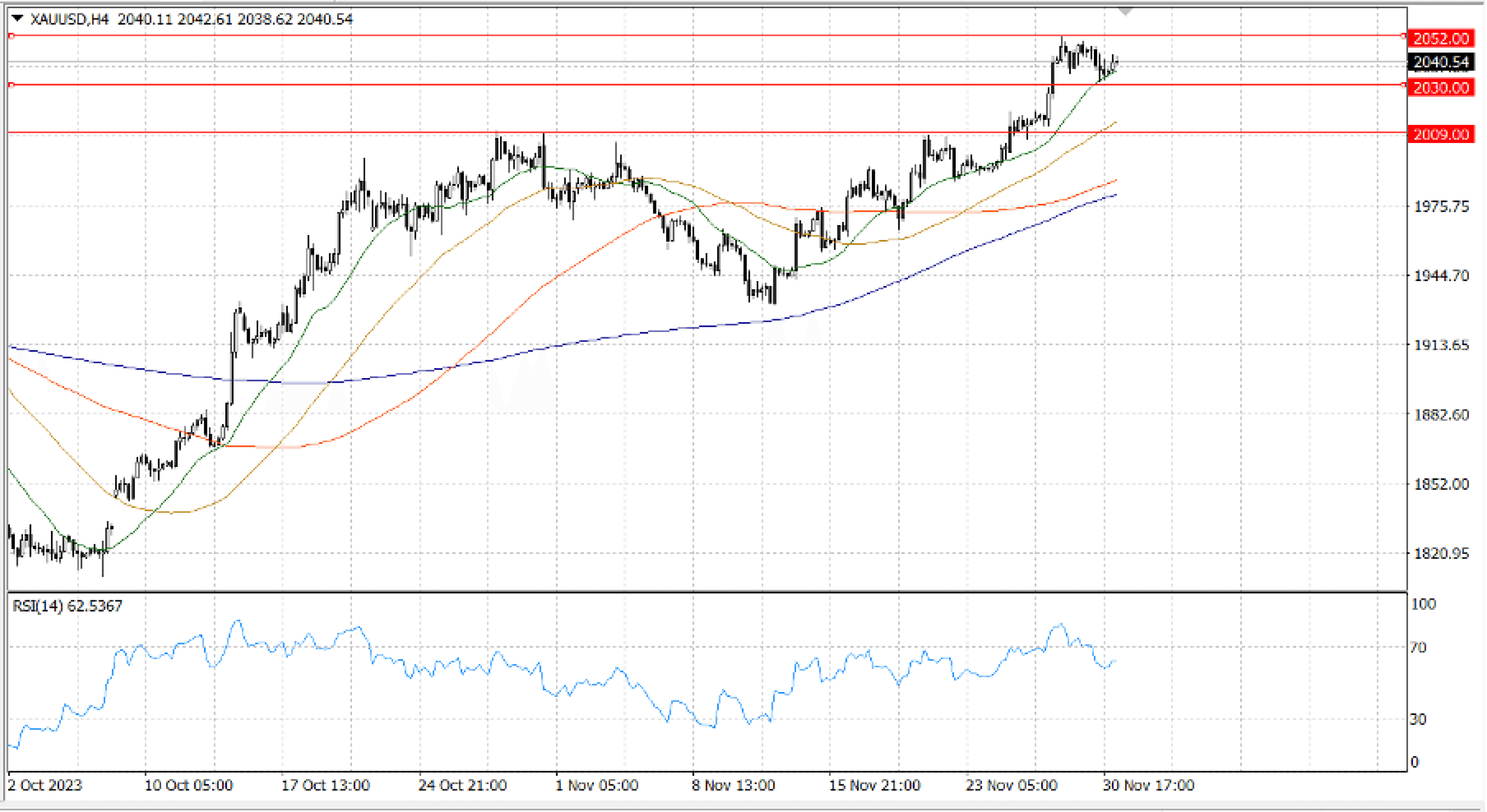 Gold dealers will be attentively examining his remarks to determine the validity of the Fed rate-cut rumours. Powell is probably going to stick to his talking point that additional tightening is still in the works if inflation doesn't improve. Meanwhile, a surprising increase in the Chinese Caixin Manufacturing PMI report for November will keep supporting the price of gold. The world's largest consumer of gold is China.