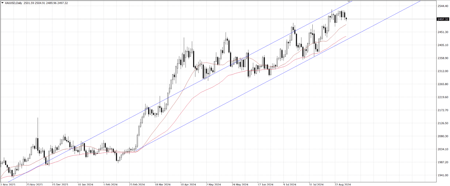 In Asian trading on Monday, gold price (XAU/USD) fell below the psychologically key $2,500 level, largely under pressure from a stronger U.S. dollar. The strengthening of the dollar was helped by the release of the US personal consumption expenditure (PCE) data for July, which supported the dollar's gains despite being lower than expected. In addition, the sluggish performance of the Chinese economy, especially the weak manufacturing purchasing managers' index (PMI), further weighed on the demand for gold.