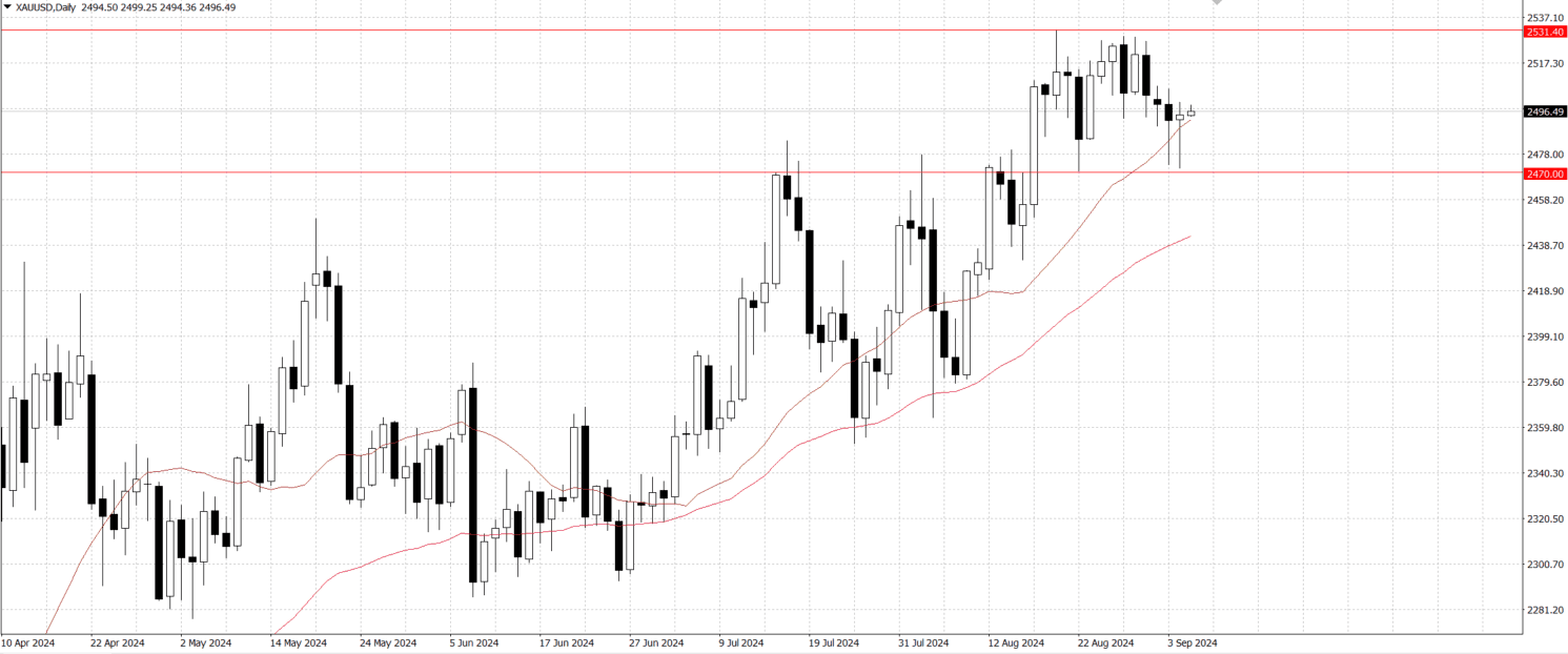 Gold price (XAU/USD) continues to be supported by expectations that the Federal Reserve will cut interest rates by 50 basis points in September, while a decline in US Treasury yields and a weaker US dollar have also provided upward momentum for non-yielding precious metals. However, traders remained cautious ahead of Friday's US non-farm payrolls report (NFP). More recently, a drop in U.S. job openings to a 3-1/2-year low in July, coupled with weak U.S. manufacturing data, has stoked concerns about the health of the U.S. economy, boosting gold's appeal as a safe-haven asset. With rising expectations that the Fed is about to start a rate cut cycle, gold's losses in the short term may be limited.