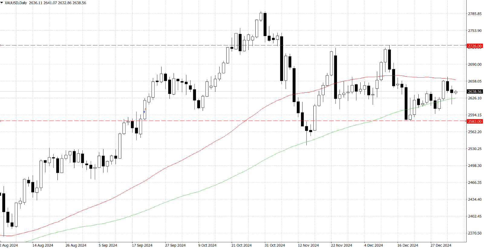 Gold prices (XAU/USD) edged higher during the Asian session on Tuesday, extending their overnight recovery from the ... zone, though bullish momentum remained limited. Support for the precious metal stemmed from expectations that US President-elect Donald Trump's proposed tariffs and protectionist policies could fuel inflation, reinforcing gold's appeal as an inflation hedge. Additionally, ongoing geopolitical risks, including the protracted Russia-Ukraine conflict and tensions in the Middle East, bolstered the safe-haven demand for gold. However, the metal faced headwinds from the potential for slower interest rate cuts by the Federal Reserve in 2025, which continue to support elevated US Treasury yields, along with renewed US Dollar strength. Traders appeared cautious, refraining from making aggressive bets ahead of key economic events this week, including the FOMC minutes release and the US Nonfarm Payrolls (NFP) report, set for Wednesday and Friday, respectively.