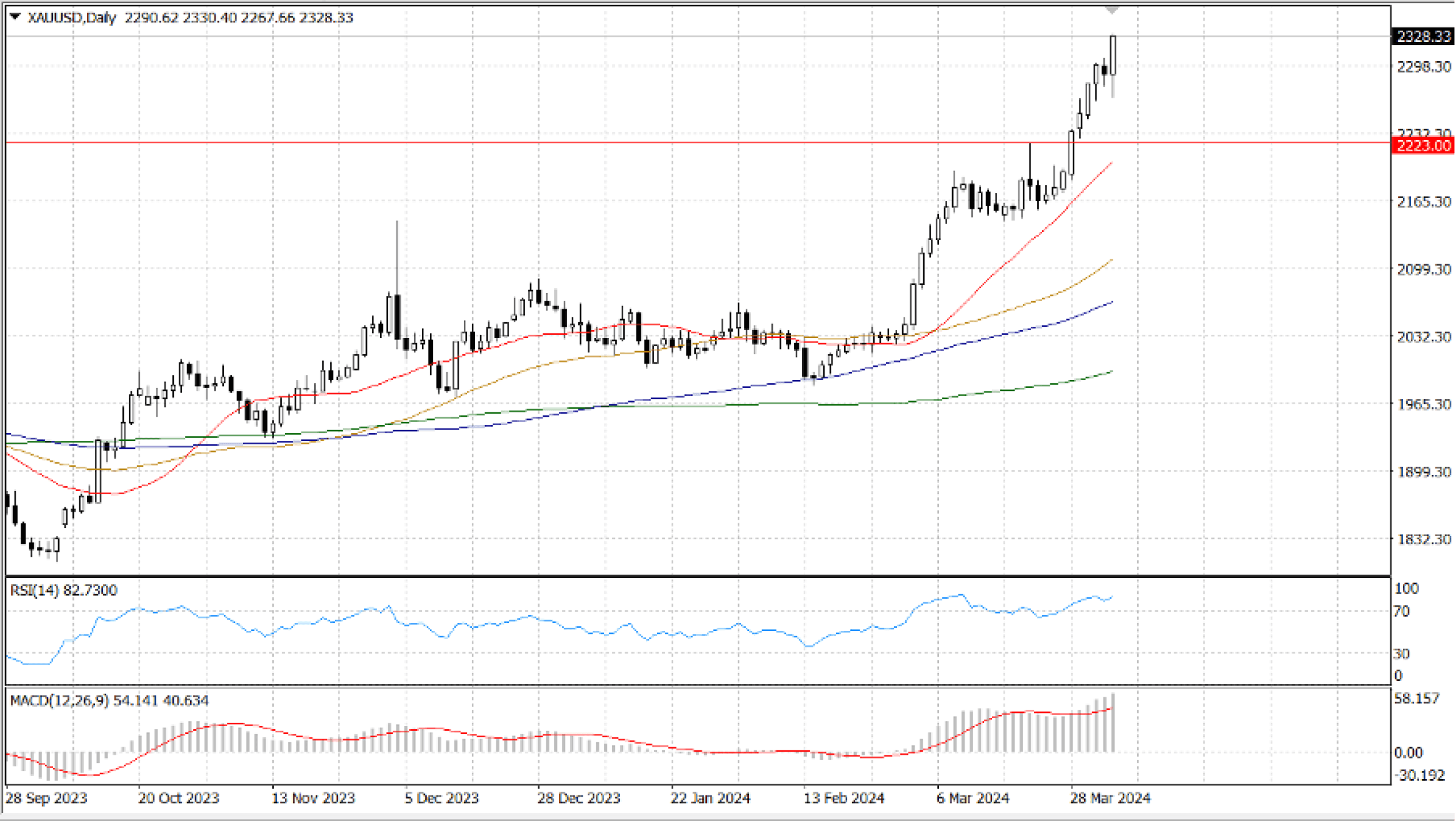 US Non-Farm payrolls for March exceeded forecasts and February's results, with 303,000 new hires. As a result, the unemployment rate decreased, while average hourly earnings showed mixed results, increasing monthly but falling annually. Bets that the Fed will lower rates in June dropped further in response to the data, from about 70% a week earlier to just over 53%.
