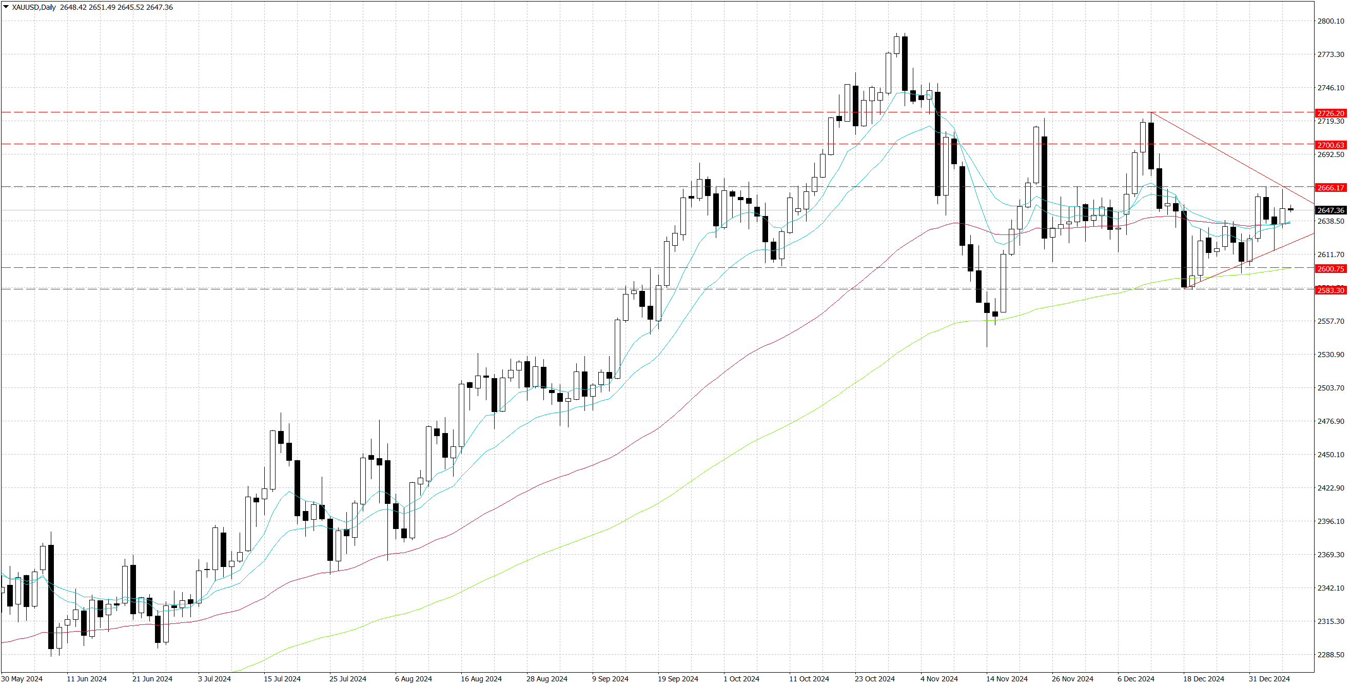 Gold (XAU/USD) continues to navigate a complex macro environment characterized by competing fundamental drivers. Recent economic data, particularly the stronger-than-expected ISM Services PMI (54.1) and JOLTS job openings (8.098M), has reinforced the Federal Reserve's cautious stance on rate cuts, as evidenced by the metal's sharp rejection from .... This fundamental shift is clearly visible in the price action, with increased selling pressure emerging above .... However, the downside remains supported by escalating geopolitical tensions, particularly concerning potential military intervention in Gaza, and uncertainty surrounding President-elect Trump's trade policies. The rejection of reports suggesting a softer stance on tariffs has maintained a floor under gold prices, with institutional buying emerging near the ... technical support, as confirmed by elevated volume profiles in this region.