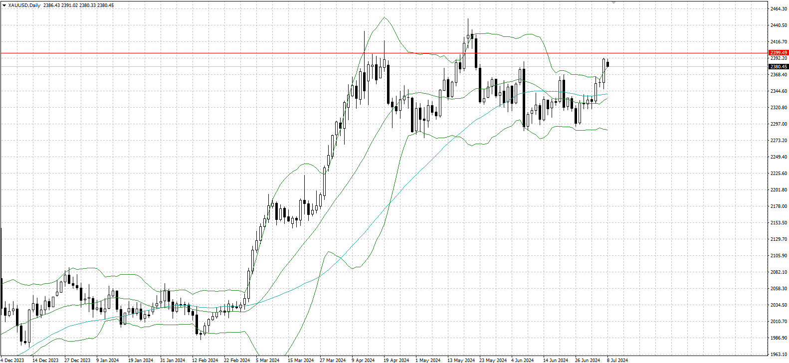 Gold prices (XAU/USD) lost some momentum below $2,400 as the People's Bank of China suspended gold purchases for the second month in a row. China held 72.8 million Troy ounces of gold at the end of June, unchanged from the end of May, according to official data. The decision by China, the world's largest consumer of gold, has weighed on gold prices. Market expectations of a Fed rate cut in September could limit the downside for gold. Friday's U.S. Non-Farm Employment Change data was strong, with 206,000 new jobs created in June, above expectations of 190,000. However, the unemployment rate rose to 4.1%, while average hourly earnings growth slowed to 3.9%, in line with expectations. The data reinforced market expectations of a rate cut by the Federal Reserve. In addition, the results of the French parliamentary election indicate that parliament may be in limbo, increasing political uncertainty and thus supporting safe-haven demand for gold. Investors will also be watching Federal Reserve Chairman Jerome Powell's testimony on Tuesday for more clues on future monetary policy.