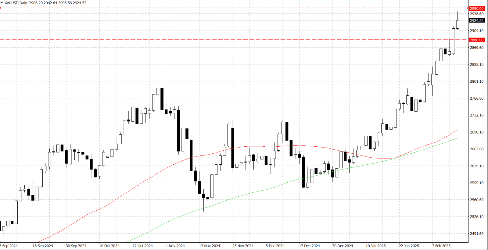 Gold prices (XAU/USD) hit a record high during the Asian session on Tuesday but later retreated due to profit-taking amid a stronger US Dollar (USD). The surge was driven by safe-haven demand following US President Donald Trump's announcement of 25% tariffs on steel and aluminum, with plans for additional reciprocal tariffs, raising concerns of a global trade war. Inflation fears, fueled by Trump's protectionist policies, also supported gold as a hedge against rising prices. However, upbeat US employment data and inflation concerns bolstered expectations that the Federal Reserve (Fed) would maintain interest rates, strengthening the USD. Market attention now shifts to Fed Chair Jerome Powell's testimony for insights on future rate decisions, which could impact gold's direction.