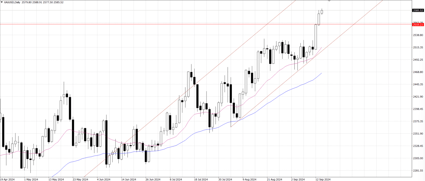 Gold prices (XAU/USD) continued to move higher this week and hit a record high, largely driven by expectations of an interest rate cut by the Federal Reserve. With inflationary pressures easing in the US, expectations are rising that the Federal Reserve will cut interest rates by a hefty 50 basis points later this month. The market is currently pricing in a more than 50% chance of a rate cut, according to CME Group. That has caused the dollar to weaken and 10-year Treasury yields to hover near their lows for the year, making non-yielding gold more attractive. In addition, uncertainty ahead of the US election and ongoing geopolitical risks around the world, such as the Russia-Ukraine war and Middle East tensions, further boosted risk aversion and supported gold demand. Also, the positive sentiment in global equity markets is posing some headwinds for gold, while investors remain cautious ahead of this week's central bank meetings, awaiting monetary policy decisions from the Federal Open Market Committee (FOMC), the Bank of England and the Bank of Japan.