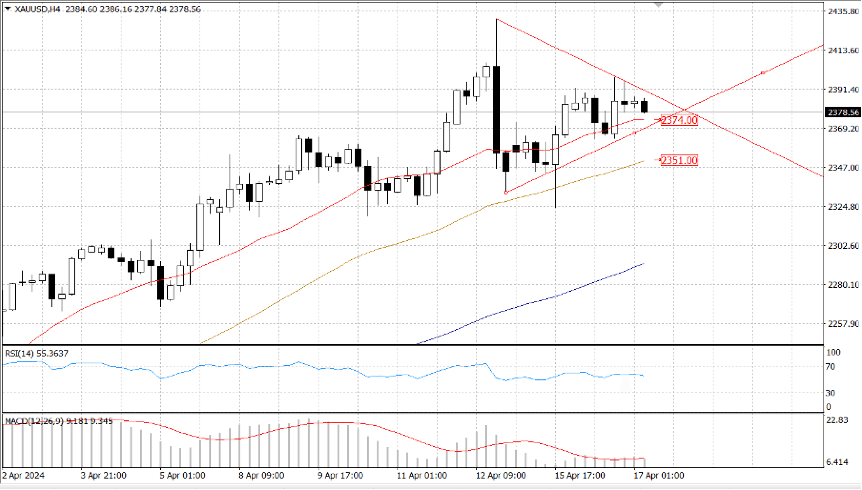 Investors continue to be concerned about the Western response to the Iranian strike, despite Iran's repeated statements that it intends no further escalation of its confrontation with Israel, as they maintain the safe-haven demand that supports the price of gold. Along with the US Treasury bond rates, the price of gold benefits from a slight decline in the US dollar as traders take a break from the recent unrelenting rise and get ready for yet another day jam-packed with Fed members' scheduled appearances.