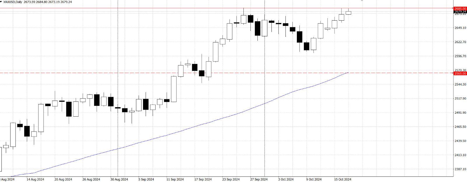 Geopolitical uncertainty, particularly with the upcoming US elections, has further increased demand for gold as a safe-haven asset. Analysts from UBS anticipate heightened volatility until a new US administration is in place, suggesting gold and oil as effective hedges in the current environment. Additionally, traders using the CME FedWatch tool assign a 96% probability to a 25-basis-point rate cut by the Federal Reserve in November, contributing to gold’s bullish momentum.