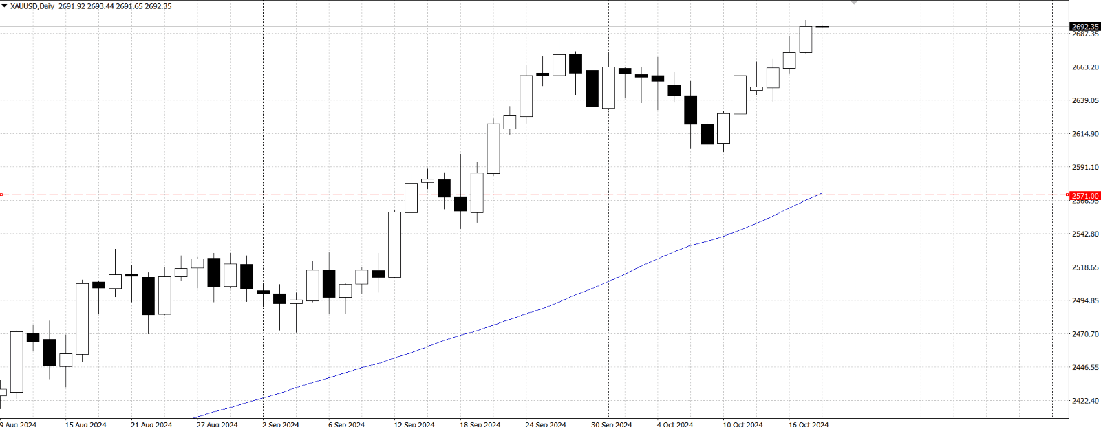 On Thursday, gold reached a record high but did not breach the $2,700 mark, held back by uncertainties surrounding the upcoming US elections. Despite positive US economic data, the precious metal remains resilient. September Retail Sales rose by 0.4% month-over-month, exceeding estimates of 0.3% and outperforming August’s 0.1% gain. Initial Jobless Claims for the week ending October 12 were 241K, below expectations and down from the previous week’s 258K, signalling a strong labour market, which initially pressured gold prices. The 10-year Treasury yield climbed by eight basis points to 4.096%, adding further weight on bullion. Geopolitical risks from the Middle East and uncertainty surrounding the contested US election are also fuelling demand for gold.
