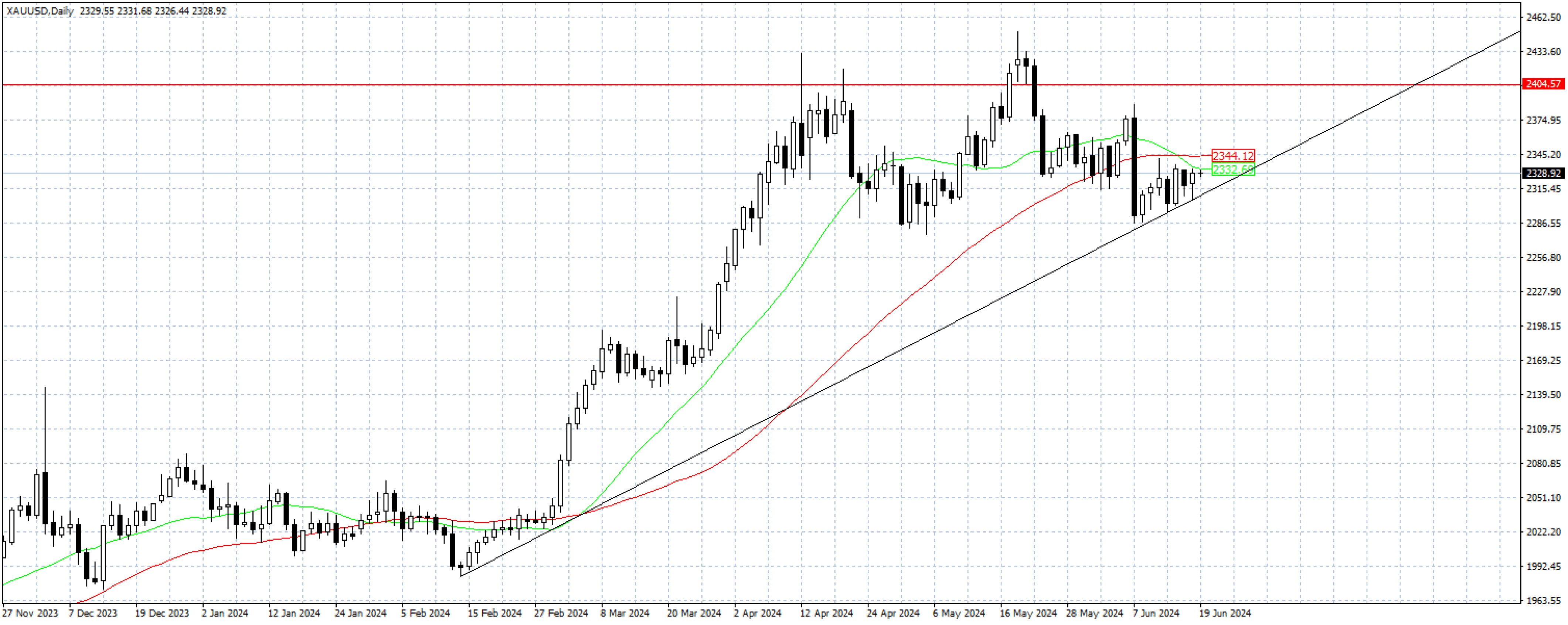 Gold prices (XAU/USD) have been rising steadily due to lower-than-expected U.S. retail data. In May, U.S. retail sales increased by 0.1% month-over-month, falling short of the anticipated 0.3%. Core retail sales also decreased by 0.1%, below the expected 0.2%. These figures suggest that inflation is effectively being controlled and moving towards the Federal Reserve's (Fed) target of 2%. The string of weak data has sparked speculation among investors that the Fed might implement a more accommodative monetary policy this year, thereby strengthening gold prices.
