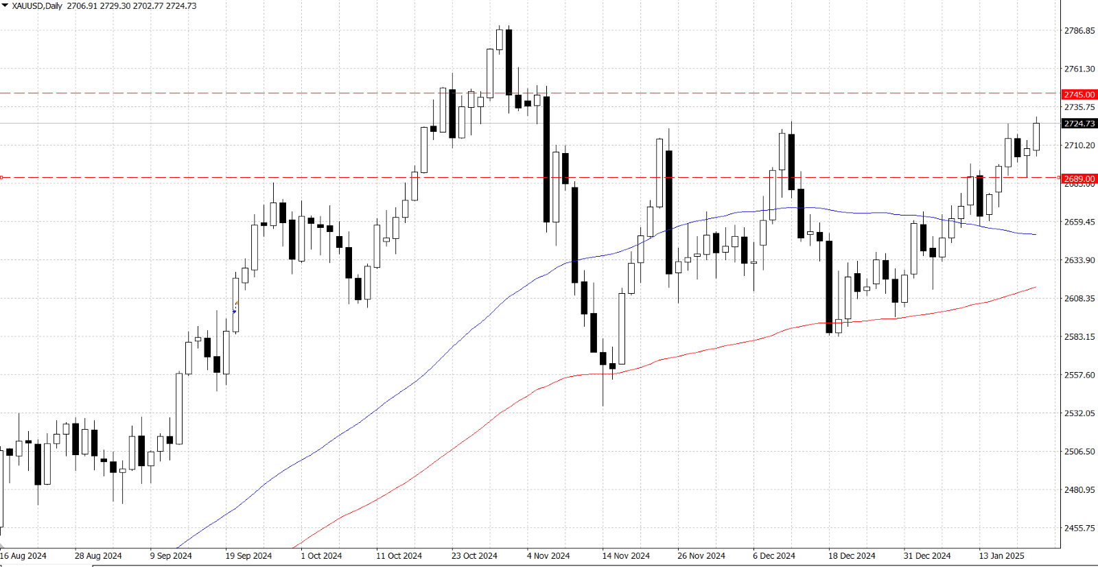 Gold prices (XAU/USD) have been rising for the second consecutive day, reaching their highest level since November 6, around $…. This is largely driven by US President Trump's tariff comments, which are increasing demand for safe-haven assets like gold. Additionally, declining US Treasury bond yields, driven by expectations that the Federal Reserve (Fed) will cut interest rates twice this year, are supporting the yellow metal. Despite this, expectations of Trump's protectionist policies reigniting inflation and the possibility of the Fed maintaining a hawkish stance are providing some support for the US Dollar (USD), limiting further gold price gains. The overall market sentiment remains positive due to the Israel-Hamas ceasefire and potential easing of tensions between the US and Russia. However, gold prices are still underpinned by expectations of rate cuts and trade war concerns. Investors are awaiting the upcoming Bank of Japan policy meeting and flash PMI data later this week, which could further influence gold market volatility.