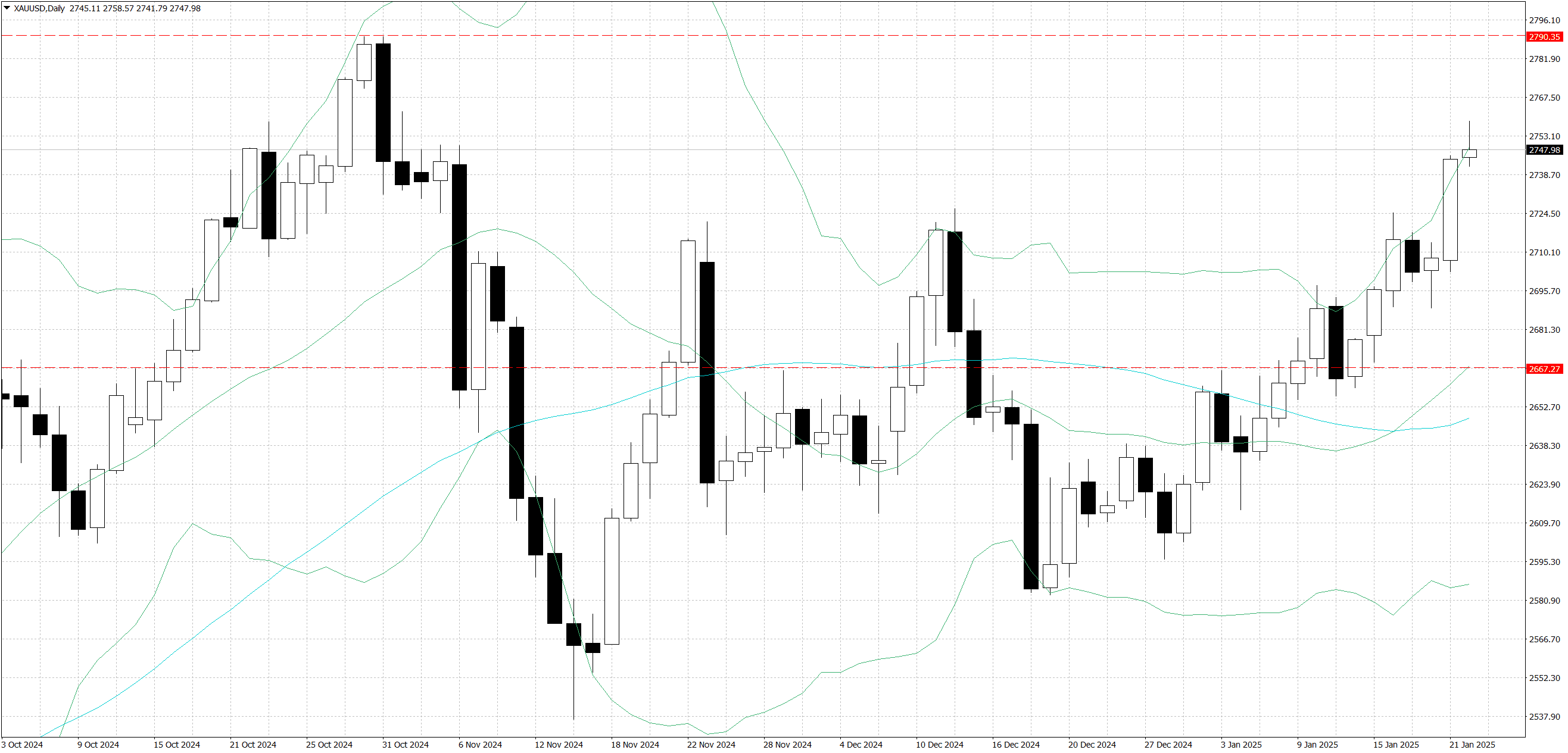 Gold (XAU/USD) has extended its bullish momentum beyond $…, primarily driven by a confluence of geopolitical and monetary policy factors. President Trump's proposed 25% tariffs on Canada and Mexico, potentially effective February 1, have injected fresh uncertainty into global trade dynamics, boosting safe-haven demand. This development, coupled with the Fed's projected rate cuts for 2025 (albeit at a more measured pace than previously anticipated), provides a supportive backdrop for precious metals. While recent robust U.S. employment data suggested potential constraints on the Fed's rate cut trajectory, the evolving trade policy landscape has overshadowed immediate economic indicators. Institutional flows remain robust, evidenced by elevated trading volumes (…) accompanying the breakout above $…. Near-term catalysts include the Bank of Japan policy decision on Friday and global PMI releases, though market focus remains primarily on trade policy developments and their implications for global risk sentiment.