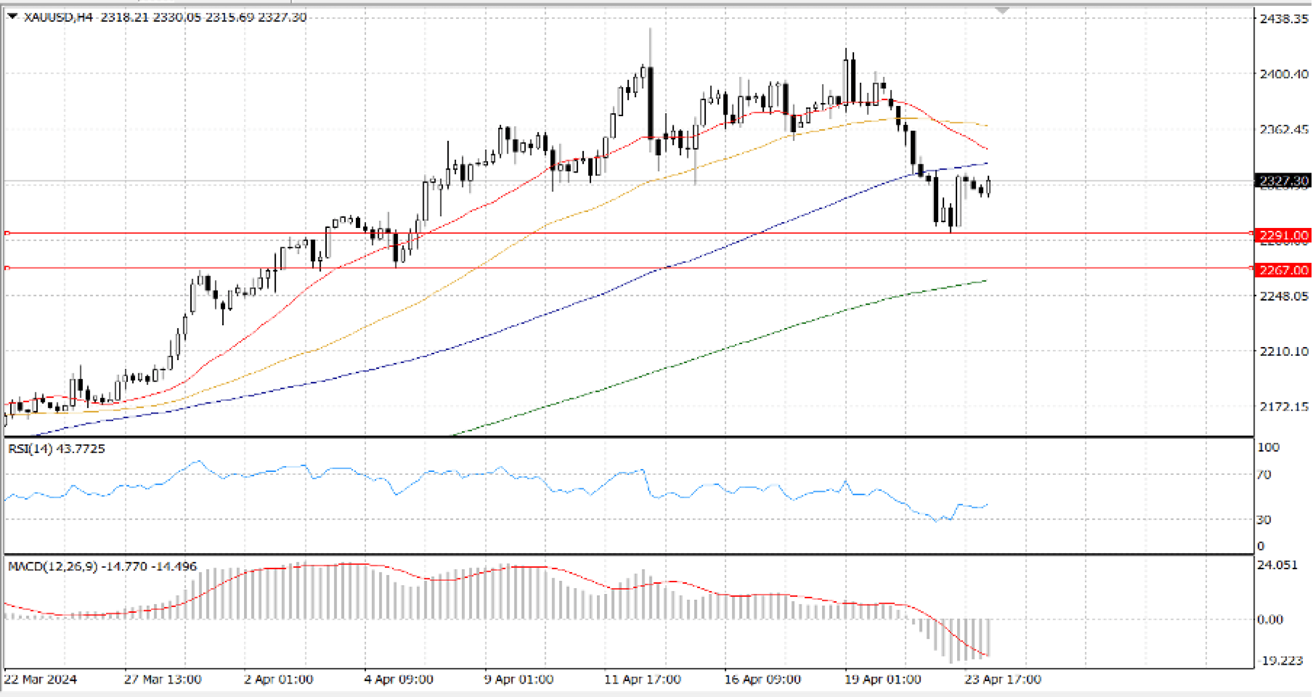 The US dollar and US Treasury bond yields saw a significant decline on Tuesday, but the safe-haven attractiveness of gold was undermined as concerns over a broader regional conflict in the Middle East subsided. As a result, gold price continued to fall. The US Preliminary Composite PMI for Tuesday was negative, all eyes are on the US Durable Goods data, which is expected late on Wednesday, for new trade incentives. This week's major event risk is still the advance first-quarter US GDP announcement.