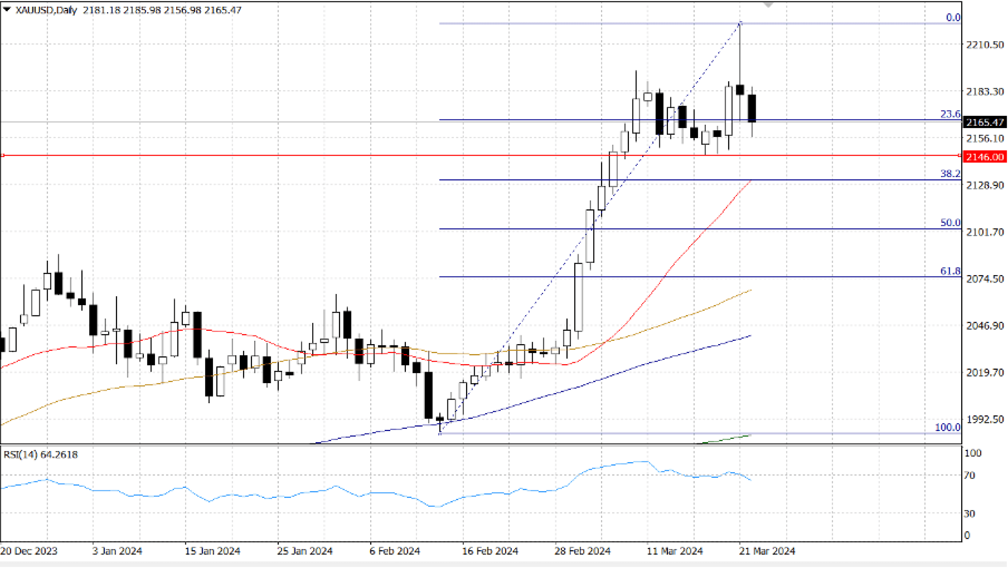 The Federal Reserve raised expectations for a potential move at the June policy meeting by projecting a less restrictive policy stance and three interest rate decreases this year. This is further supported by a recent decline in US Treasury bond yields, which may deter excessive wagering by USD bulls and sustain the price of gold, which never goes down.
