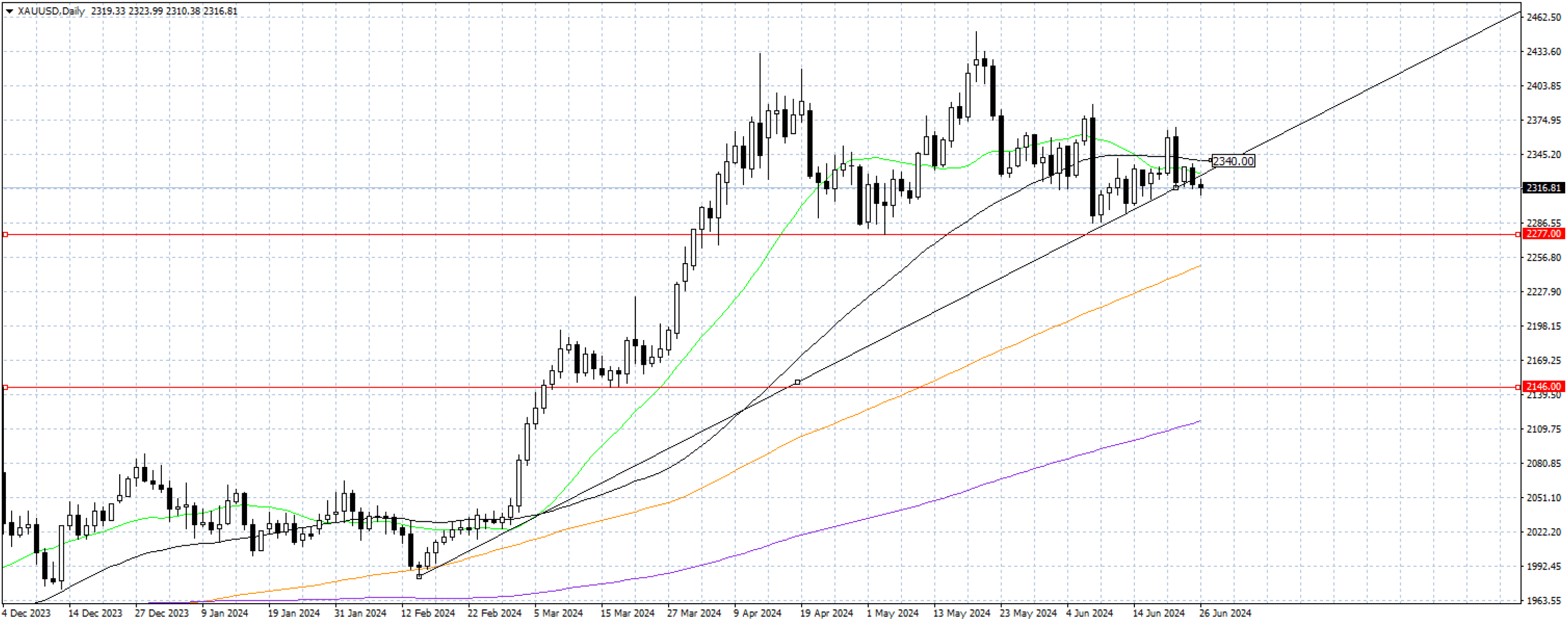 From a technical perspective, during Wednesday's Asian trading session, the XAU/USD price continued Tuesday's trend with a slight decline, briefly breaking the upward trend line. However, strong buying pressure kept the gold price above $…, leaving hope for a rebound. The first target is the 50-day simple moving average of $…, followed by the June high of $…, and then a break above the $… level. Conversely, bearish traders need to wait for the gold price to break below $… to confirm the start of a downward trend, with a target around $...