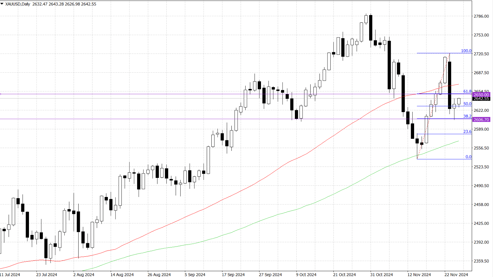 Gold prices (XAU/USD) extended their upward momentum on Wednesday, rebounding from a one-week low near $… as safe-haven demand increased amid heightened geopolitical tensions. The protracted Russia-Ukraine conflict saw intensified Russian strikes, including the use of hypersonic missiles, while Ukraine targeted locations deep inside Russia, raising fears of further escalation. Concurrently, US President-elect Donald Trump’s renewed tariff threats against Canada, Mexico, and China added to global economic uncertainties. Despite strong US consumer confidence data, with November's index hitting a high of 111.7, the US Dollar consolidated near its weekly lows, reflecting market caution as investors assessed the Federal Reserve's divided outlook on rate cuts. Attention now turns to key US economic data, including inflation and GDP figures, for additional direction. Meanwhile, a notable de-escalation in the Middle East occurred as Lebanon and Israel reached a US-brokered ceasefire, providing a glimmer of geopolitical stability.