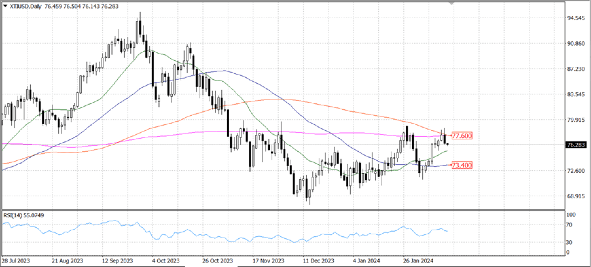 Israel retaliated to a rocket fired into Northern Israel with airstrikes in Lebanon. This comes after Israeli Prime Minister Benjamin Netanyahu called for a strong operation in Rafa, defying international demands for a truce and increasing the possibility of a further escalation of military action in the area. On the other hand, the probability of more losses for oil prices is supported by the lack of buying interest.