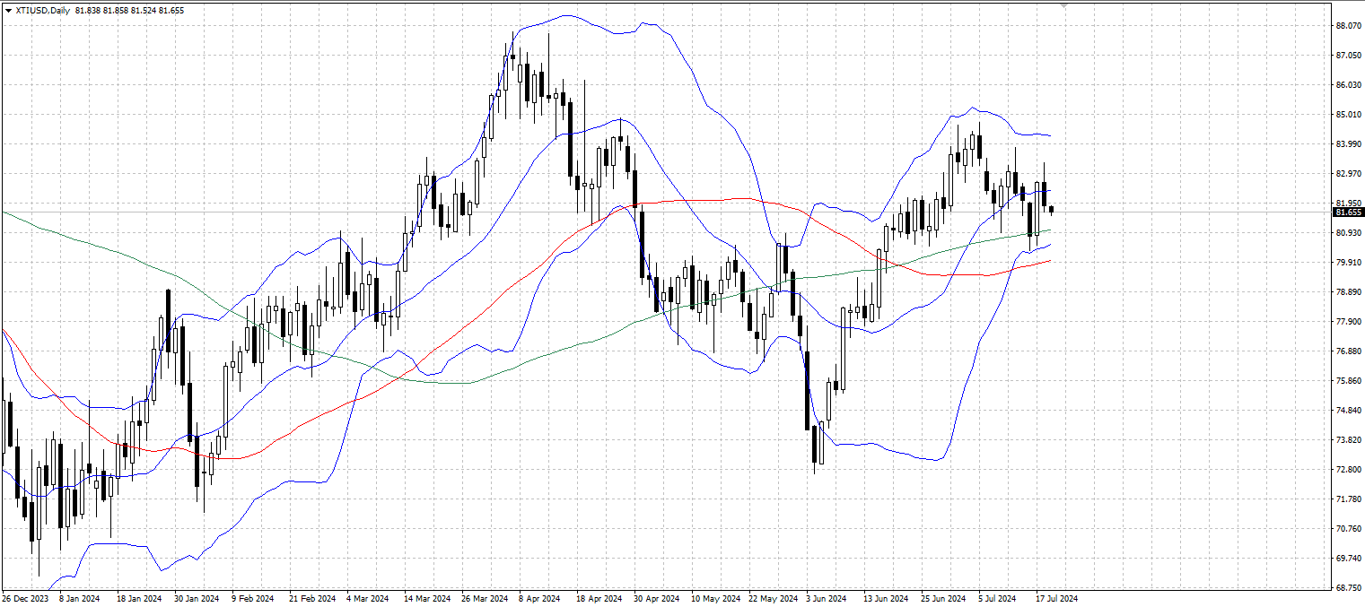 The price of West Texas Intermediate (WTI) crude oil has fallen this week amid a stronger dollar. On Thursday, WTI traded around $81.20 a barrel during European hours. While WTI prices briefly rose during the Asian session, buoyed by an unexpectedly large drop in US crude inventories, gains were capped by a strengthening dollar. Data released by the U.S. Energy Information Administration (EIA) on Wednesday showed that U.S. crude inventories fell by 4.87 million barrels in the week ended July 12, far more than the 800,000 barrels expected and the 3.443 million barrels in the previous week. The data boosted expectations for crude demand, but a stronger dollar kept prices from rising further.