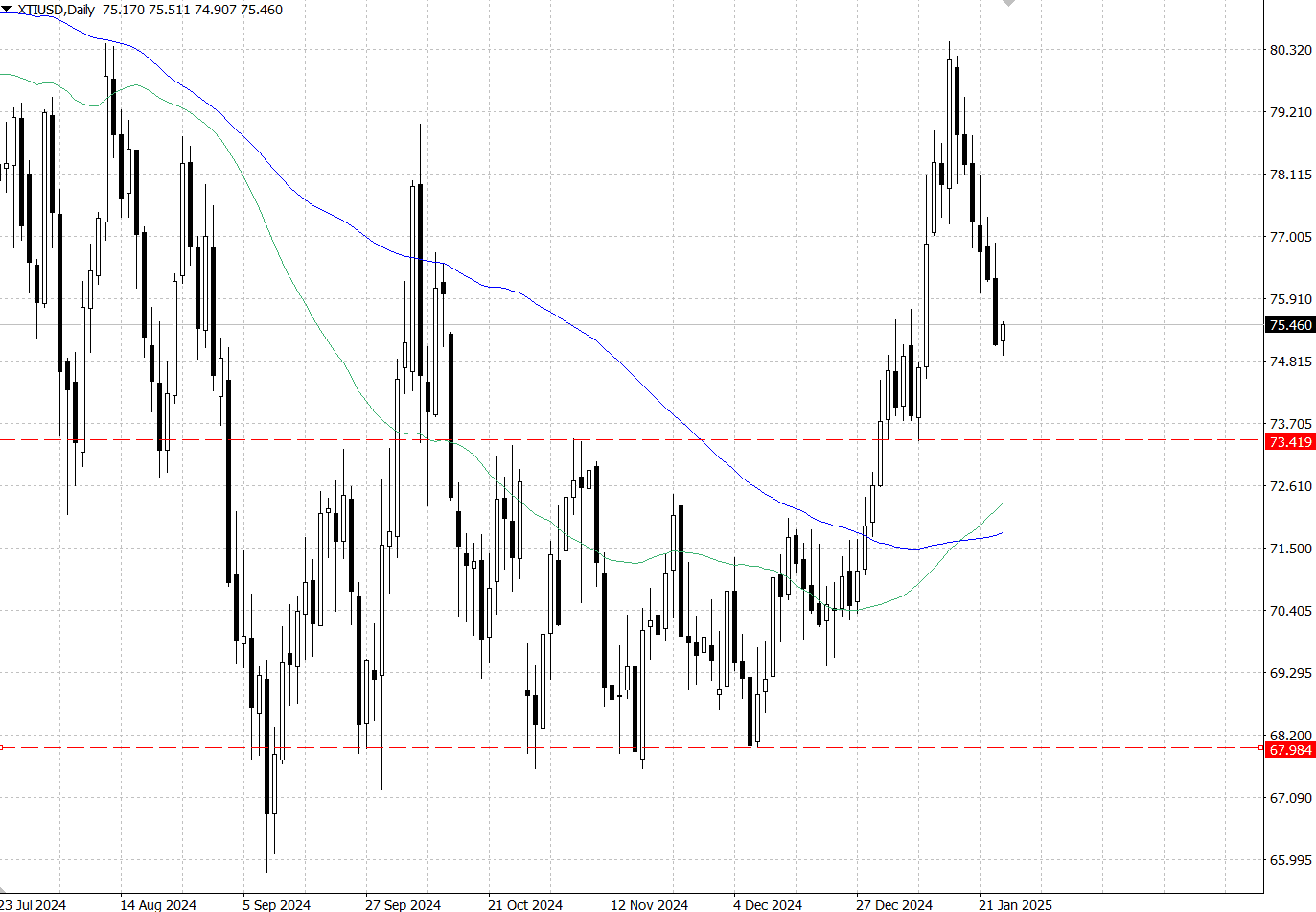 West Texas Intermediate (WTI) crude oil is trading around $… on Friday, extending its decline following President Trump’s call for Saudi Arabia and OPEC to lower oil prices during his Davos speech. Market uncertainty surrounding Trump’s tariffs and energy policies, along with expectations of increased US production after his declaration of a national energy emergency, further weigh on prices. Despite a ninth consecutive weekly decline in US crude inventories, the 1.017-million-barrel draw fell short of market expectations. Traders now await Trump’s policy developments and the preliminary US PMI data, as a weaker-than-expected outcome could lower the US Dollar and lend support to WTI prices.