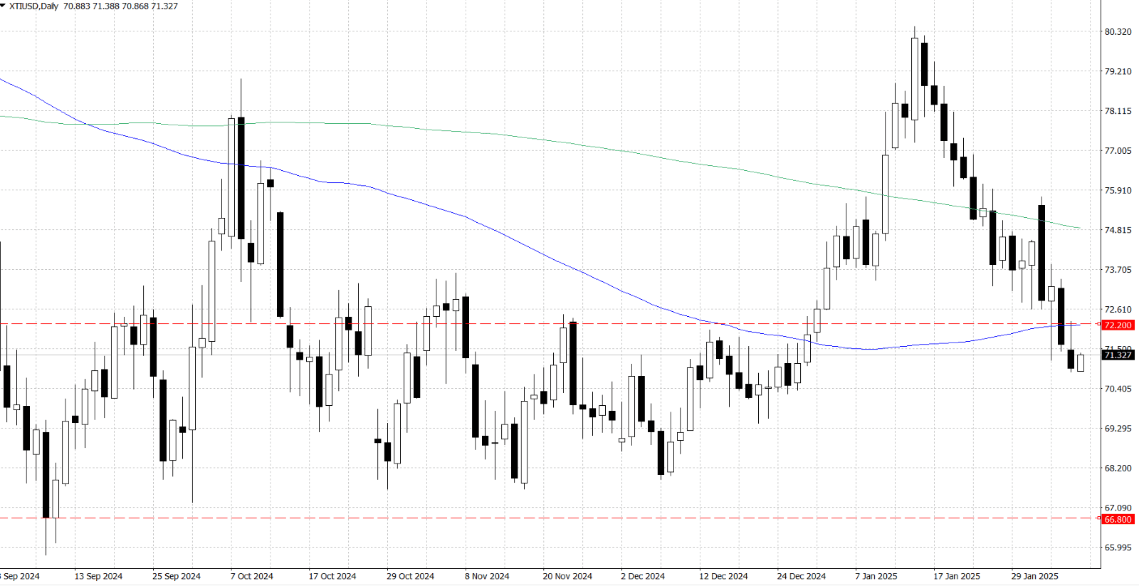 West Texas Intermediate (WTI) crude oil is trading around $…-$… range, edging lower amid concerns about weakening demand, particularly after China imposed retaliatory tariffs on US crude oil imports in response to US tariffs. This intensifies fears of a global economic slowdown and reduced energy demand, especially in China, the world’s largest oil importer. Additionally, US crude inventories rose by a larger-than-expected 8.664 million barrels last week, signaling softening demand. However, rising geopolitical tensions in the Middle East, including potential US actions in Gaza and sanctions on Iran, could provide some support for WTI prices by tightening supply concerns.