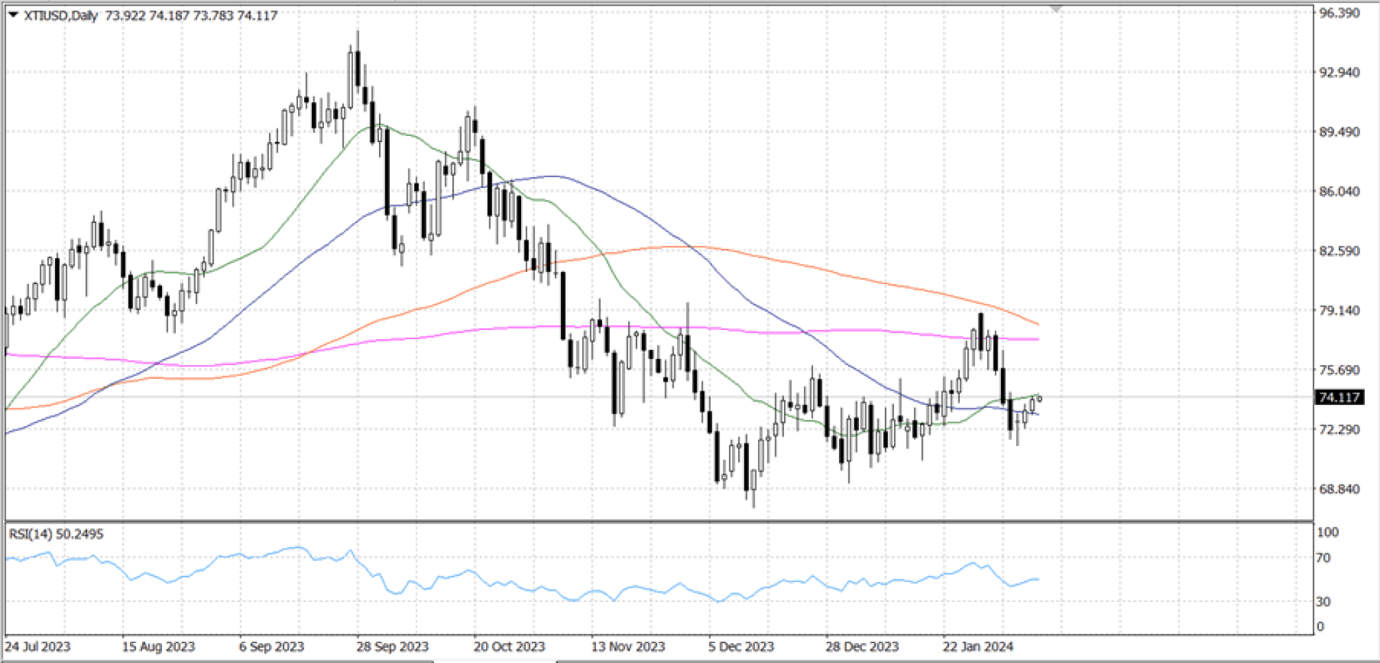 US Crude Oil is still trading in the center of a medium-term congestion range that has hindered price progress since it dropped below the 200-DMA in November. WTI is still down following a near-term rejection from the 200-DMA just below the $… handle.