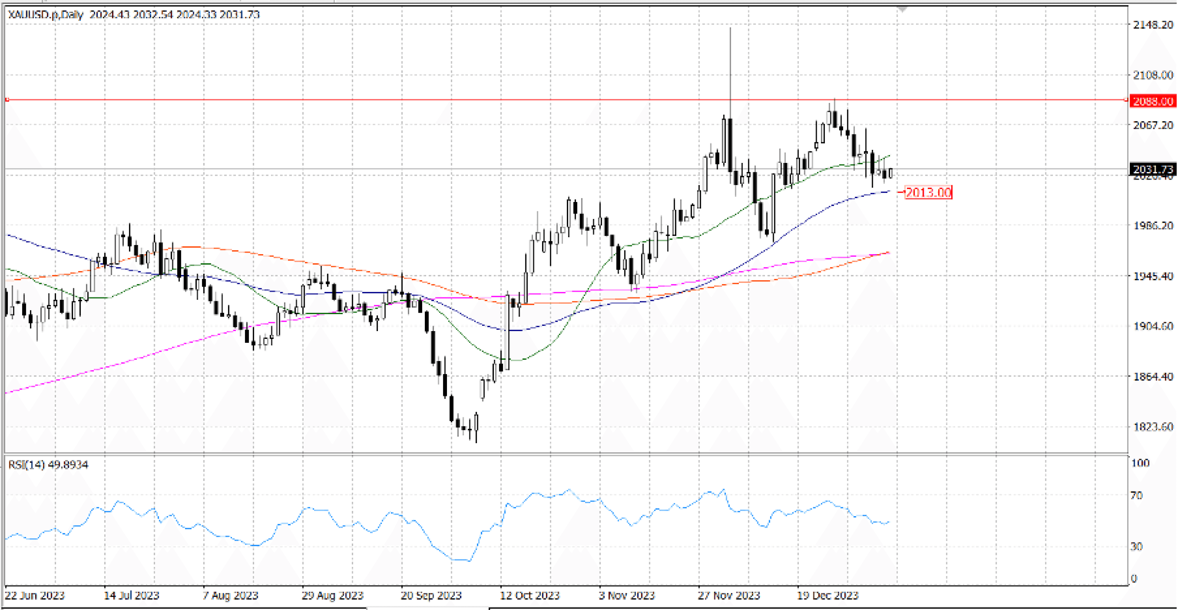 Gold's daily chart indicates a neutral bias in the yellow metal because buyers were unable to break through the most recent cycle high, which was reached on December 28 at $... The short-term trend for XAU/USD is slightly negative, and a decline to test the $… mark may intensify if sellers drive prices below the 50-DMA of $... Alternatively, if buyers enter the market and push prices over $…, that may open the door for a test of the cycle high noted above, which is around $…, before a rebound to $...