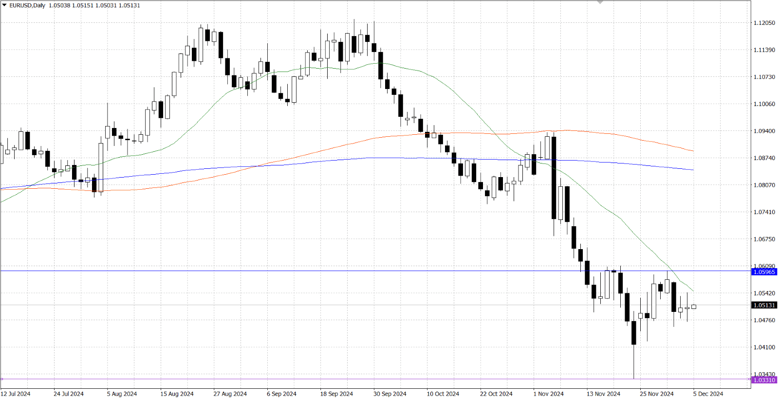 EUR/USD fell below … during Wednesday's North American session but rebounded above the threshold on Thursday, as political uncertainty in France deepened with a no-confidence vote threatening Prime Minister Michel Barnier’s government. Concerns over the Eurozone’s economic outlook also weighed on the Euro, as ECB President Christine Lagarde highlighted weaker near-term growth while policymakers debated potential rate cuts ahead of the December 12 meeting. Meanwhile, the US Dollar displayed resilience despite weaker-than-expected ADP Employment data, which revealed that the US private sector added only 146K jobs in November. Besides, the Institute for Supply Management (ISM) Services PMI eased to 52.1 in November, below estimates and lower than October’s 56 reading. Fed officials have hinted at further rate cuts as inflation cools, with a 77% probability of a 25-basis-point reduction at the December 18 meeting, according to the CME FedWatch Tool, while geopolitical tensions escalated with President-elect Trump threatening 100% tariffs on BRICS nations.