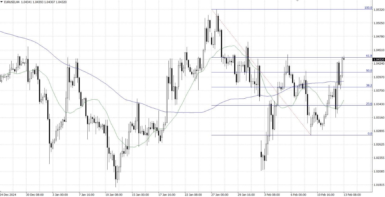 The EUR/USD pair continued its upward trend for the third consecutive session, trading around 1.0430 during Asian hours on Thursday, as investors await Germany's Final Harmonized Index of Consumer Prices (HICP) data, with inflation expected to remain steady at 2.8% year-over-year in January. However, concerns about a potential global trade war are weighing on the pair, as the White House indicated that President Trump might announce a reciprocal tariff plan before meeting with Indian Prime Minister Modi. Meanwhile, US inflation data for January surpassed expectations, with the Consumer Price Index (CPI) rising 3.0% year-over-year, and core CPI increasing to 3.3%. This stronger-than-expected inflation has reinforced expectations that the Federal Reserve will maintain interest rates at 4.25%-4.50% for a prolonged period, with the likelihood of a rate cut in June now dropping to nearly 30%. Fed Chair Jerome Powell noted that while inflation has moderated, the central bank still has work to do, citing robust labor market conditions and economic growth.