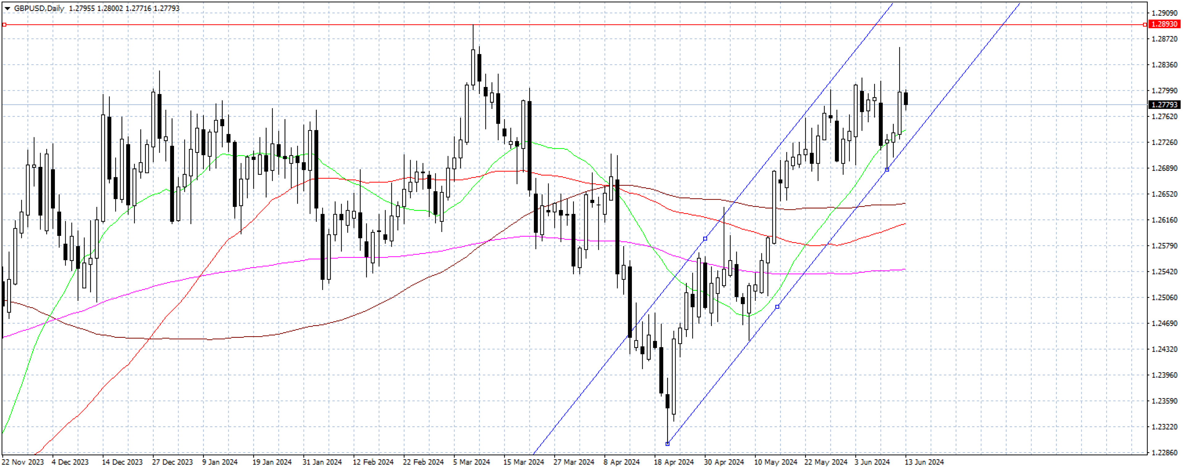 Although the negative surprise in the U.S. May Consumer Price Index (CPI) inflation report pressured the dollar, the Federal Reserve's (Fed) hawkish stance limited its decline, causing GBP/USD to pull back after reaching a high of 1.28560. On the other hand, investors widely believe that the Bank of England (BoE) is unlikely to cut rates in June, shifting their expectations to August or September, which has provided new momentum for the pound.