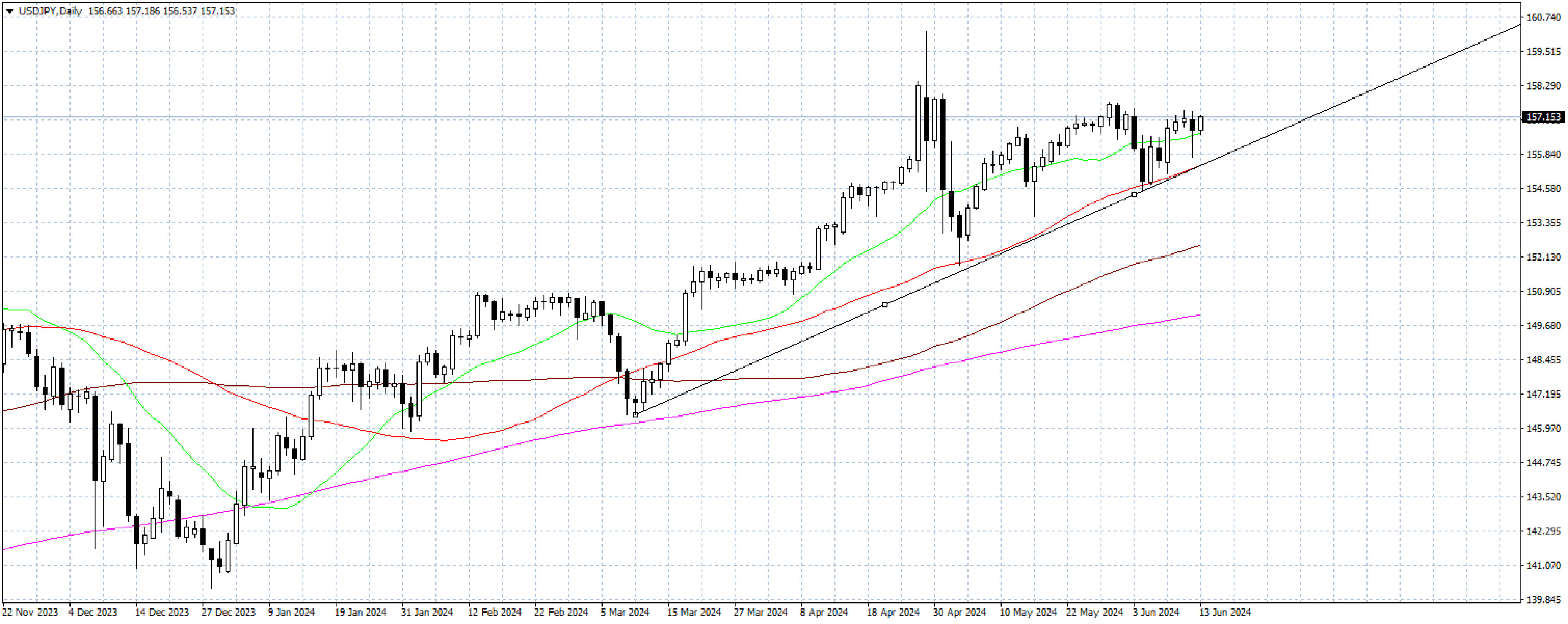 On the daily chart, USD/JPY is consolidating within an ascending channel and shows a bullish tendency. Although there is a significant obstacle at … , breaking this level could turn it into support, pushing the price towards … , a 30-year high. On the downside, the yen is rising along the 50-day simple moving average, and if it breaks below … yen, it could increase downward pressure on USD/JPY, pushing the price towards the low of ...