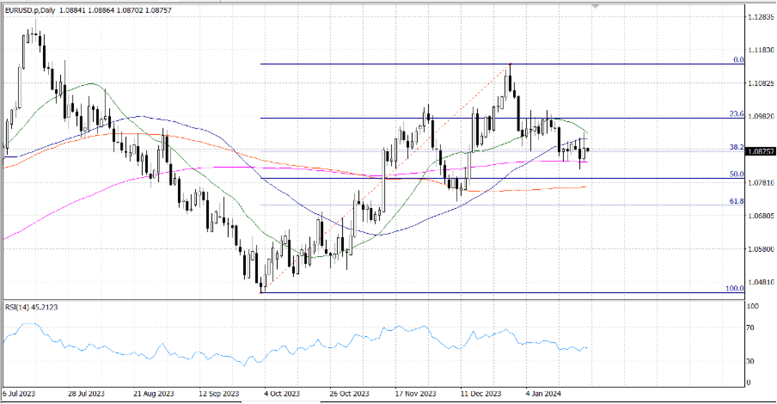 The EUR/USD pair seems to have immediate support around the 38.2% Fibonacci retracement at the … level, with the major support at the … level following. The pair may traverse the region surrounding psychological support at … and the 50% retracement level at … if the primary support collapses.