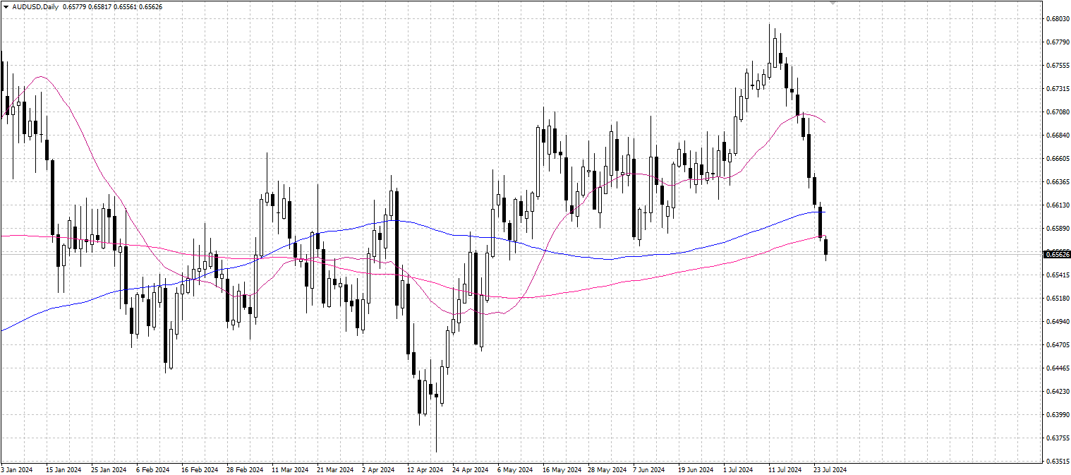 AUD/USD extended its decline to 0.6580. The main reasons are rising concerns about the health of the Chinese economy and falling commodity prices, especially iron ore. In addition, Australia's Judo bank PMI data showed weakness in the economy, further weighing on the performance of the Australian dollar. Still, the Reserve Bank of Australia's (RBA) delay in cutting interest rates due to high inflation could limit further weakness in the Australian dollar.