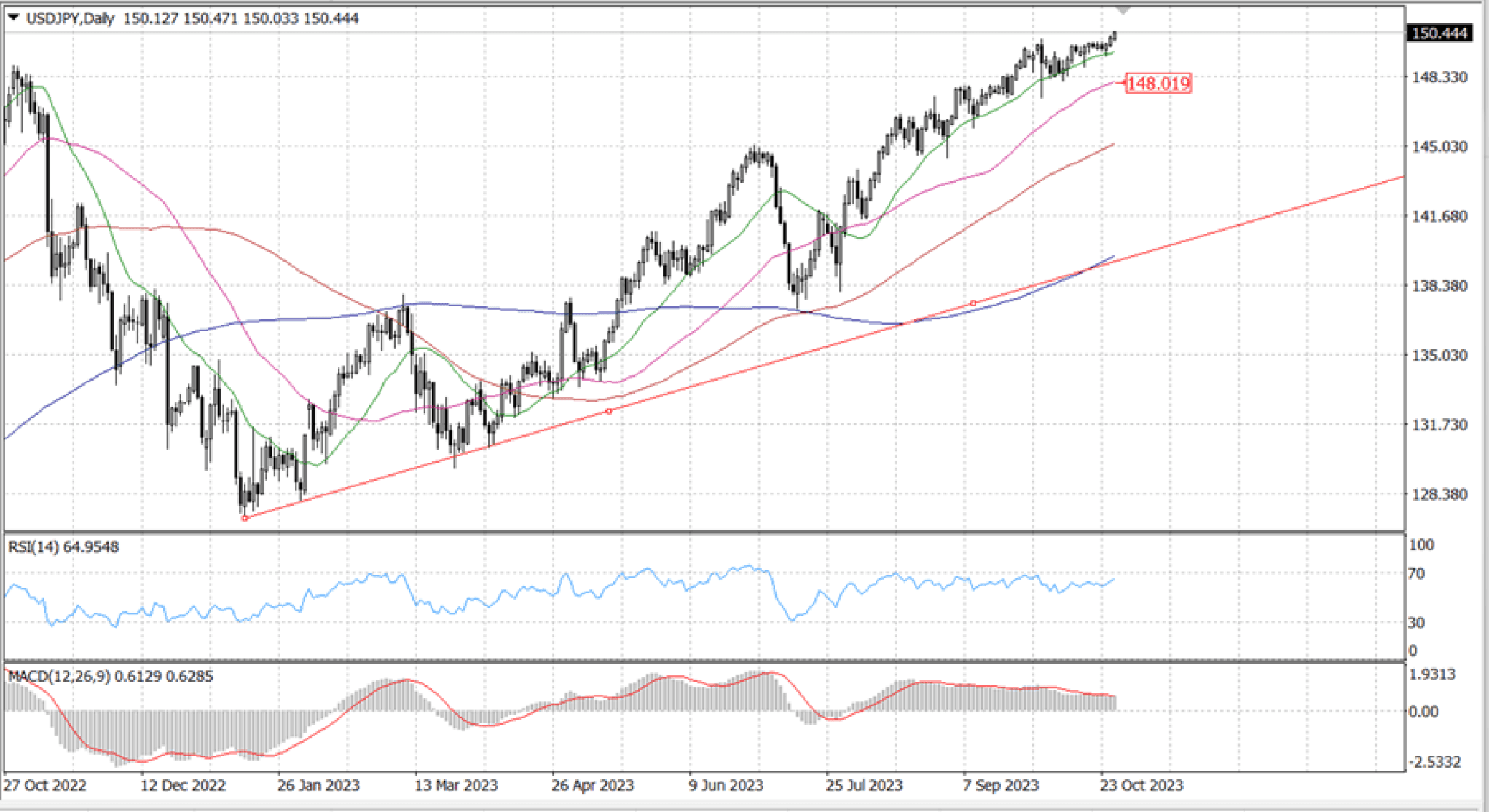 The USD/JPY pair is trading above …, despite the Dollar-fuelled pump. With little technical resistance above to draw meaningful boundaries, the USD/JPY is currently trading in a no-man's-land. However, given the pair's long-term bullish outlook for the majority of 2023, there isn't much technical support outside of the 50-DMA, which is currently rising into …, while the 200-DMA is stuck around …, well below the current price action.