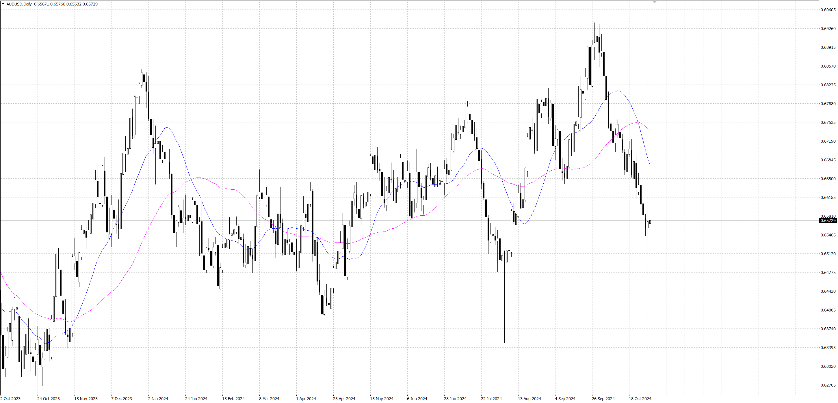 The Australian dollar against the US dollar (AUD/USD) has fluctuated this week under the influence of key economic data and market expectations for the policies of the Federal Reserve and the Reserve Bank of Australia. Australia's retail sales data were slightly lower than expected, with a month-on-month growth of only 0.1% in September, missing expectations of 0.3%. In addition, Australia's consumer price index (CPI) increased by 0.2% in the third quarter, indicating lower than expected inflationary pressures. These data indicate that Australia's economic growth is slowing down, keeping the market concerned about the future policy of the Reserve Bank of Australia. However, given that the Reserve Bank of Australia maintained the cash rate at 4.35% and suggested that this level is sufficient to curb inflation, the market currently does not expect an interest rate cut in November.