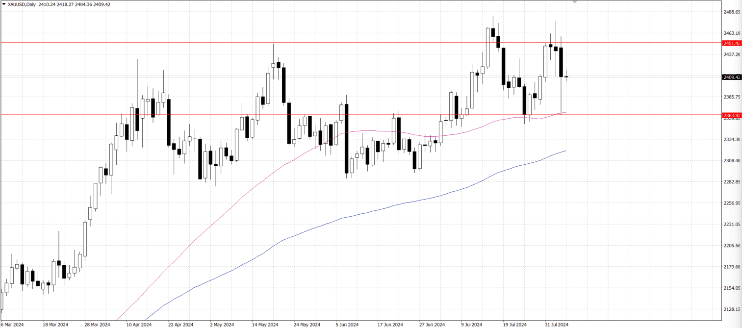 in the US dollar combined to limit the upside for gold. Weak US macroeconomic data released last week added to concerns about a possible downturn in the US economy, which in turn raised expectations that the Federal Reserve would cut interest rates by 50 basis points in September. These expectations should limit further gains in U.S. bond yields and the dollar, providing support for non-yielding gold. In addition, ongoing geopolitical tensions in the Middle East have further strengthened safe-haven demand for gold. Overall, while market risk sentiment and a stronger US dollar have put pressure on gold prices, expectations of Fed rate cuts and geopolitical risks have provided important support for gold, limiting its downside.