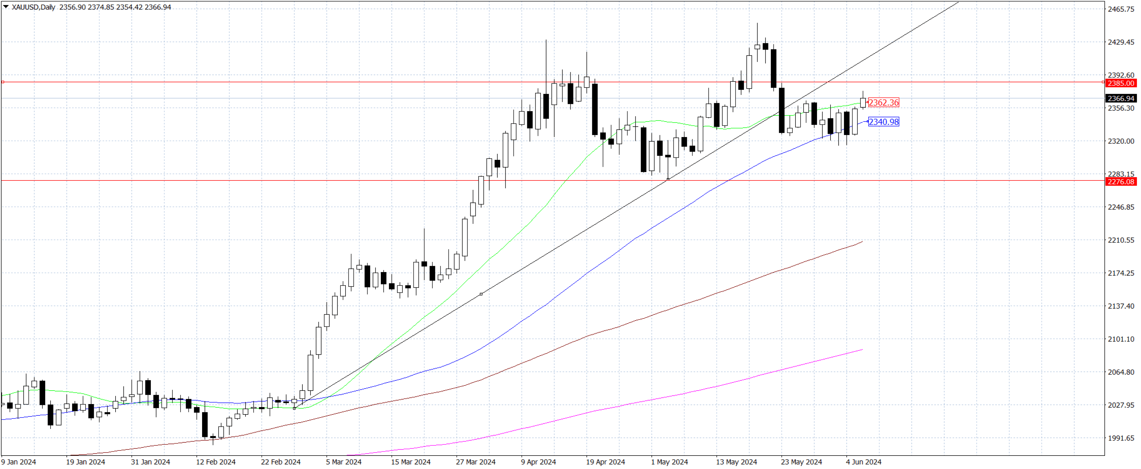 Weak U.S. economic data attracted more buying interest during today's Asian trading session, pushing prices to near a two-week high of $2375 per ounce. The market continues to focus on the Federal Reserve's expected rate cut in September, with lower borrowing costs expected to stimulate economic activity. Additionally, rate cuts by several central banks signal concerns about slowing economic growth, while sluggish U.S. bond yields are also supporting the rise in gold prices.