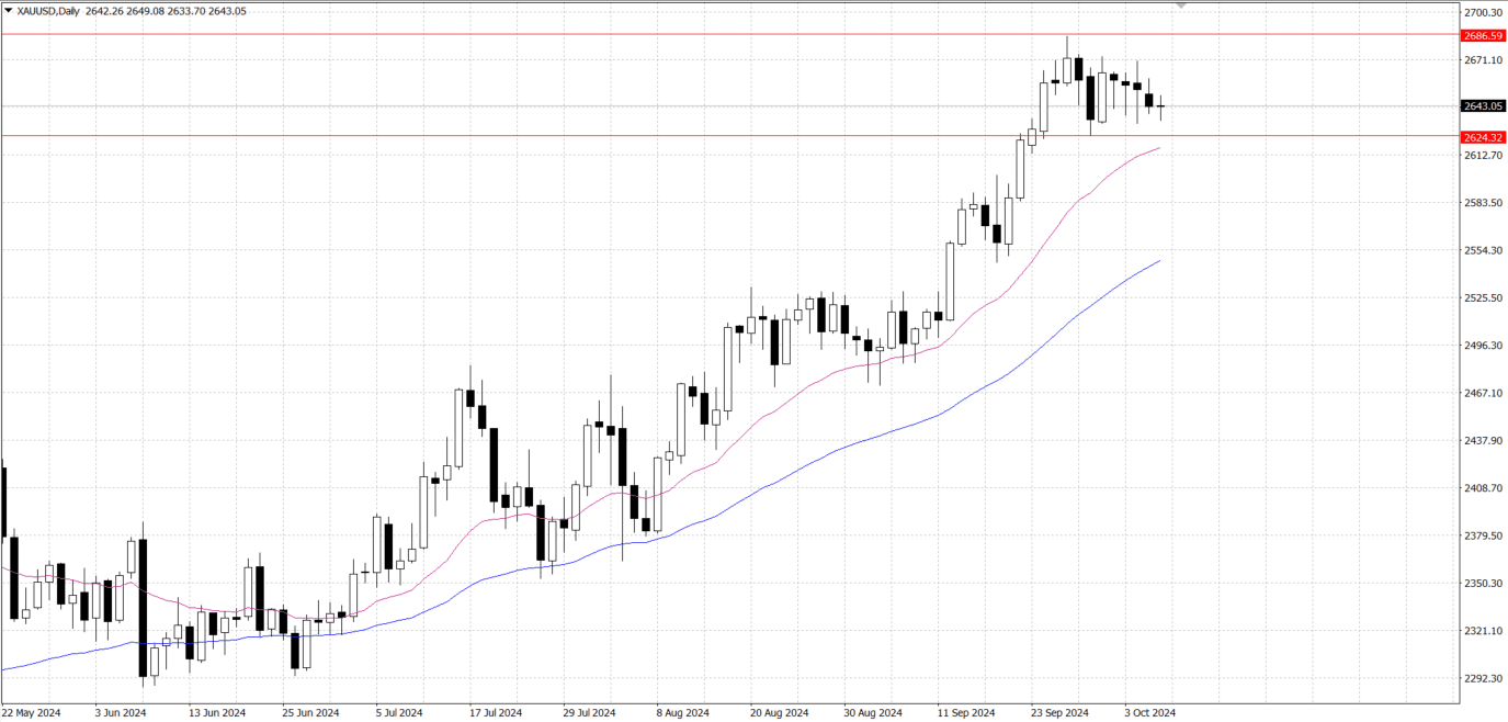 Gold prices (XAU/USD) were weak during the Asian trading session, but remained above the lower boundary of the short-term trading range. Following strong US jobs data, investors trimmed their expectations for the Federal Reserve to cut interest rates by 50 basis points in November, which put some pressure on non-yielding gold prices. In addition, Treasury yields rose above 4%, further boosting the dollar. Nonetheless, as the market expects the Fed to adjust policy more gently, this has provided some support for gold prices.