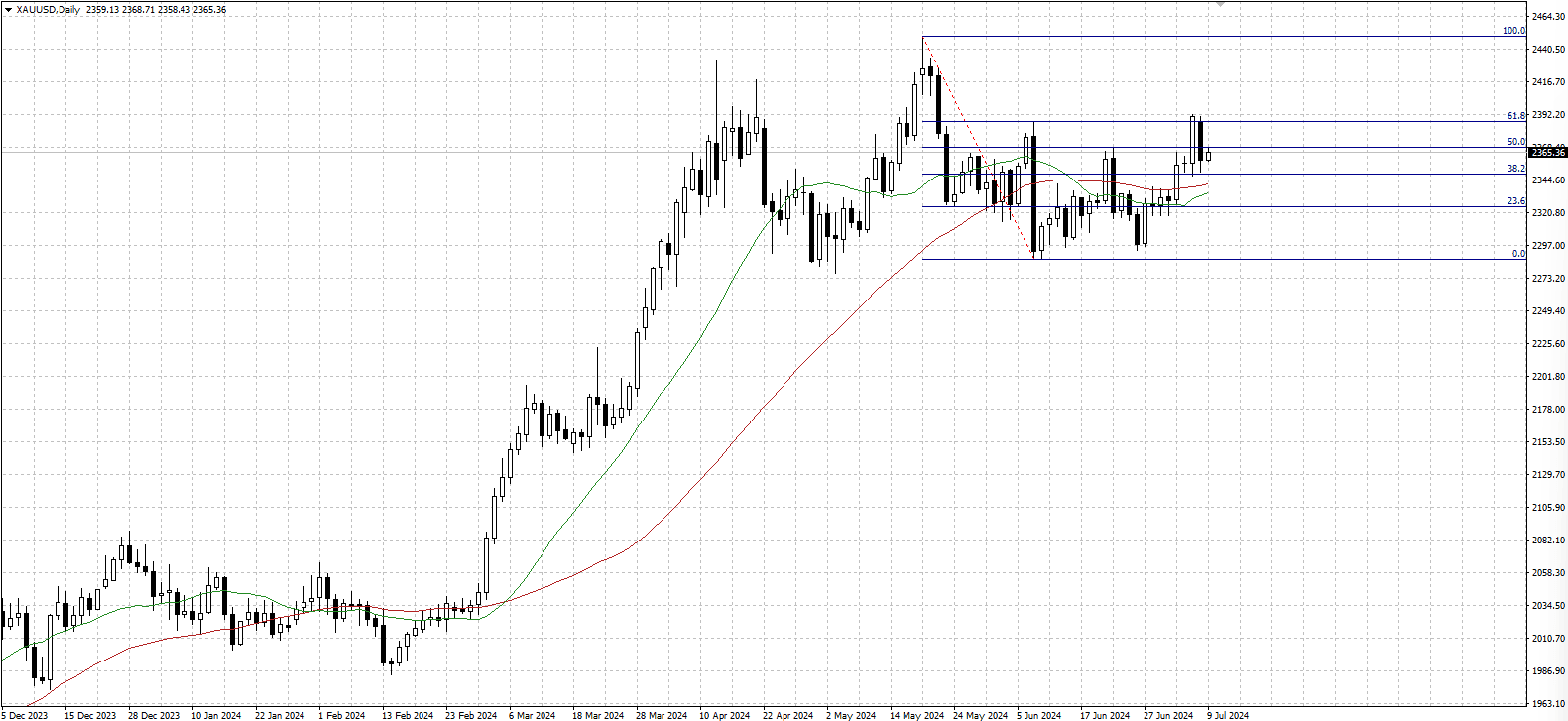 In early European trading on Tuesday, gold prices (XAU/USD) rebounded somewhat on the back of a weaker US dollar. Weak U.S. job data last week bolstered market expectations of a Federal Reserve rate cut in September, lending support to precious metals. In addition, political uncertainty in France and geopolitical tensions in the Middle East increased safe-haven demand in the market, further boosting gold prices. However, the People's Bank of China (PBoC) suspended gold purchases for the second month in a row, which could weigh on gold/USD in the short term. Market expectations for a September rate cut now stand at 76%, up 5% from 71% on Friday. The data added to market expectations of a rate cut by the Federal Reserve. Investors will be watching Federal Reserve Chairman Jerome Powell's testimony before Congress for more clues on future monetary policy. And Thursday's Consumer Price Index (CPI) inflation data will be a key focus for investors.