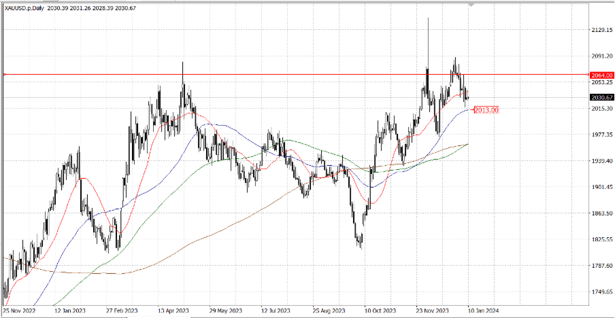 The spot gold price remains at well-known levels, with the XAU/USD pair remaining toward the lower half of Monday's range. Following Wall Street's opening, the US Dollar gained strength as equities declined rapidly, indicating a pessimistic outlook for the market. As traders prepare for the release of the US inflation figures for December, gold's price movement is predicted to stay restrained. While the core is predicted to rise by 3.8% YoY, less than the previous report, the Consumer Price Index is predicted to increase by 3.3% YoY.