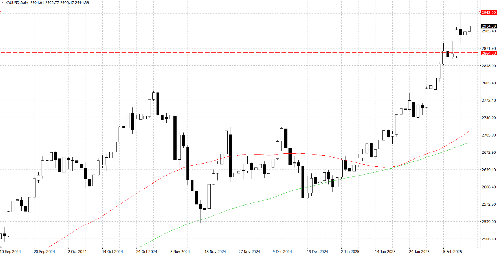 Gold prices (XAU/USD) continue to rise for the second consecutive day, reaching the $… level amid escalating trade tensions and renewed US Dollar (USD) weakness. Concerns over US President Donald Trump's newly imposed tariffs on steel and aluminium, along with fears of a global trade war, have bolstered demand for the safe-haven metal. Meanwhile, hotter-than-expected US inflation data has reinforced expectations that the Federal Reserve will maintain its hawkish stance, leading to a surge in US Treasury bond yields, which could limit gold’s upside. Despite this, the USD remains weak, further supporting bullion. Investors now await US Producer Price Index data and jobless claims figures for further market direction.