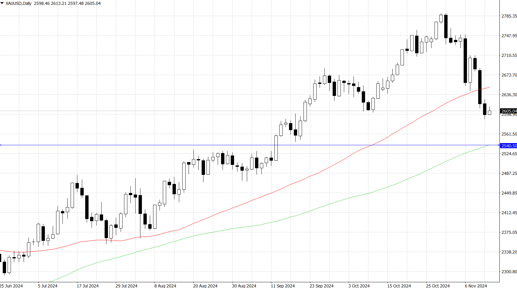 In the broader market context, the U.S. Dollar has entered a consolidation phase near its highest level since early May, following recent strength. This USD strength, combined with concerns over U.S. President-elect Donald Trump’s protectionist trade policies, is raising fears of global economic impact, creating demand for safe-haven assets like gold. Additionally, weakness in equity markets has further supported gold prices amid this risk-off sentiment. However, the upside for gold remains limited, as Trump’s anticipated expansionary fiscal policies could drive inflation higher, which in turn may reduce the likelihood of aggressive Fed rate cuts. Consequently, while gold may benefit from short-term safe-haven demand, expectations of persistent inflation could cap significant gains.