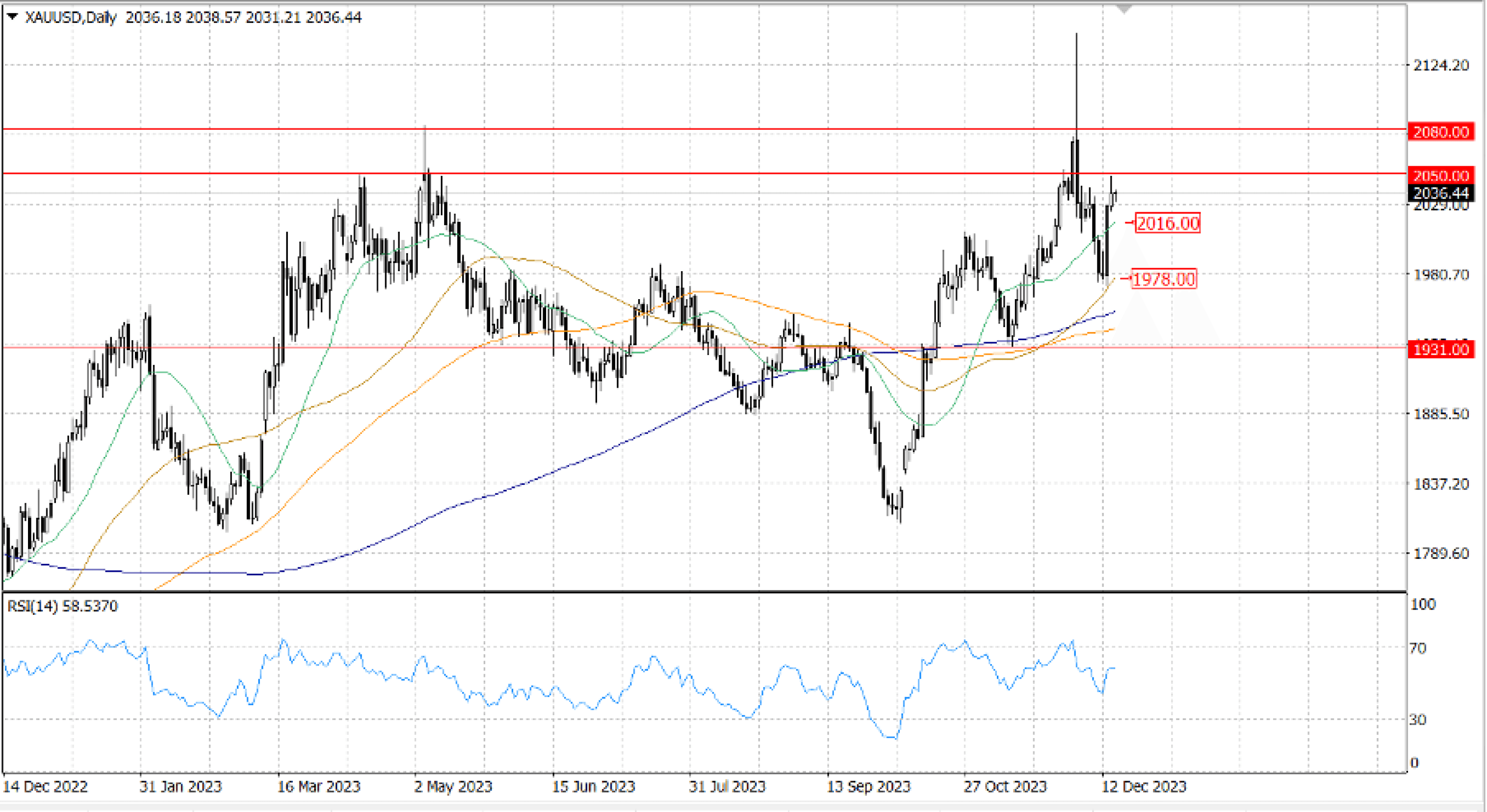 The US Dollar saw significant losses as the differences in monetary policy between the Fed, the BoE, and the ECB became more apparent. Falling jobless claims and an unexpected increase in US retail sales figures provided some relief for the greenback. However, the momentary respite for the US dollar proved fleeting, as the global risk-on rally driven by the dovish Fed outlook crushed it once more, maintaining the gold price close to eight-day highs of $2,048.