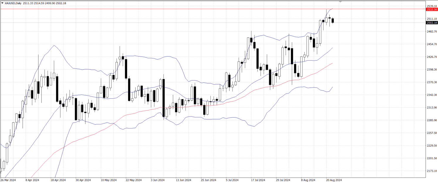 Gold price (XAU/USD) hovered above the psychological $2,500 level and held near the all-time high reached earlier this week. Expectations of a Fed rate cut continued to support gold prices, with several officials favoring an early start, which also helped push the dollar down to its lows for the year. In addition, the latest US employment data showed a weak Labour market and weaker-than-expected job growth, further strengthening market expectations for the Federal Reserve to cut interest rates. In this macro context, the safe-haven properties of gold have been strengthened. At the same time, geopolitical risks continue to exist, especially in the Middle East where the conflict between Israel and Hamas has failed to reach a ceasefire agreement, raising the risk of further escalation of regional conflicts. That also provided support for gold prices. However, as the market has improved on the global economic recovery and risk appetite, investors chose to remain cautious for the time being and wait for more clues ahead of Fed Chairman Jerome Powell's speech at Jackson Hole.