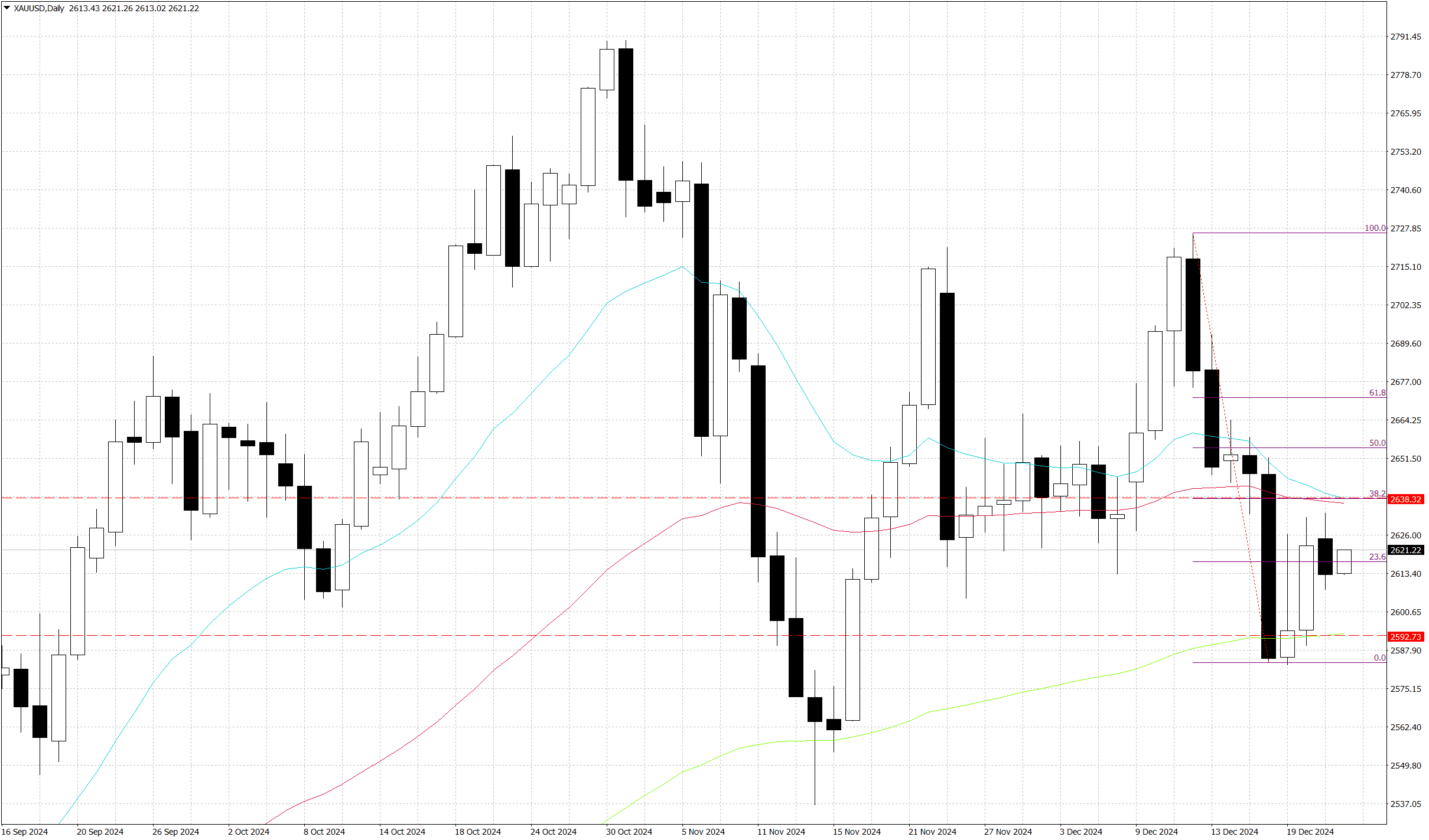 The gold market is navigating a complex fundamental landscape as we approach year-end 2024, with prices responding to multiple significant catalysts. The Federal Reserve's recent monetary policy decision, marking the third consecutive rate cut, has established a delicate balance in market dynamics. This policy shift, coupled with President-elect Trump's proposed tariff plans, has intensified market uncertainty, driving safe-haven demand. The geopolitical landscape, particularly the ongoing Russia-Ukraine conflict and Middle Eastern tensions, continues to provide underlying support for gold prices. However, the market faces headwinds from the Fed's cautious approach to future rate cuts, as inflation remains sticky above the 2% target. The recent uptick in US Treasury yields and corresponding dollar strength have created technical resistance levels, particularly evident in the declining volume patterns observed during recent rally attempts.