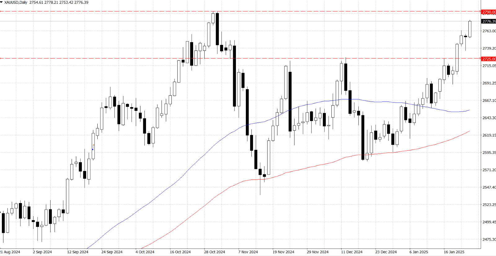 Gold prices (XAU/USD) resumed their upward trend during Friday's Asian session, reaching the highest level since October 31, as lower US Treasury yields, and a weakening US Dollar bolstered the safe-haven metal. The Dollar's slide followed US President Donald Trump's remarks suggesting he would rather avoid tariffs on China and his calls for the Federal Reserve to cut interest rates, fuelling expectations of further policy easing. Investors' concerns about the economic fallout from Trump's protectionist policies also supported gold demand, though overbought conditions and a bullish equity market limited fresh buying. The metal remains poised for a fourth consecutive weekly gain as traders await global PMI data for additional market cues.