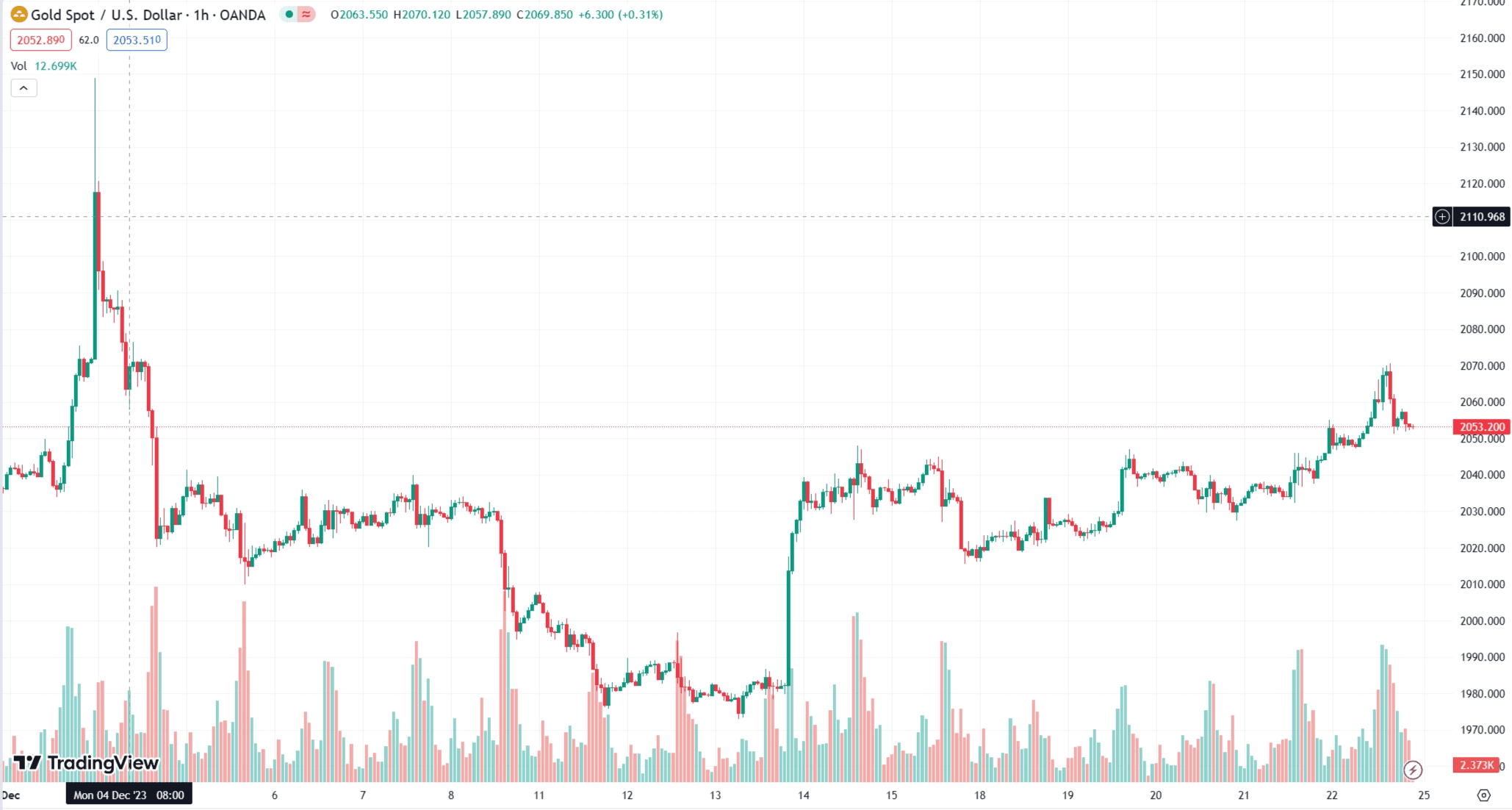 Gold (XAU/USD) reached a nearly three-week high, hovering around $2,055 on Friday. Despite this, it struggled to capitalize on the gain due to a slight increase in the US Dollar (USD). The USD Index (DXY), which measures the Greenback against other currencies, partially reversed a recent slide after the US GDP was revised downward, showing a 4.9% annualized growth compared to the previous 5.2% estimate.