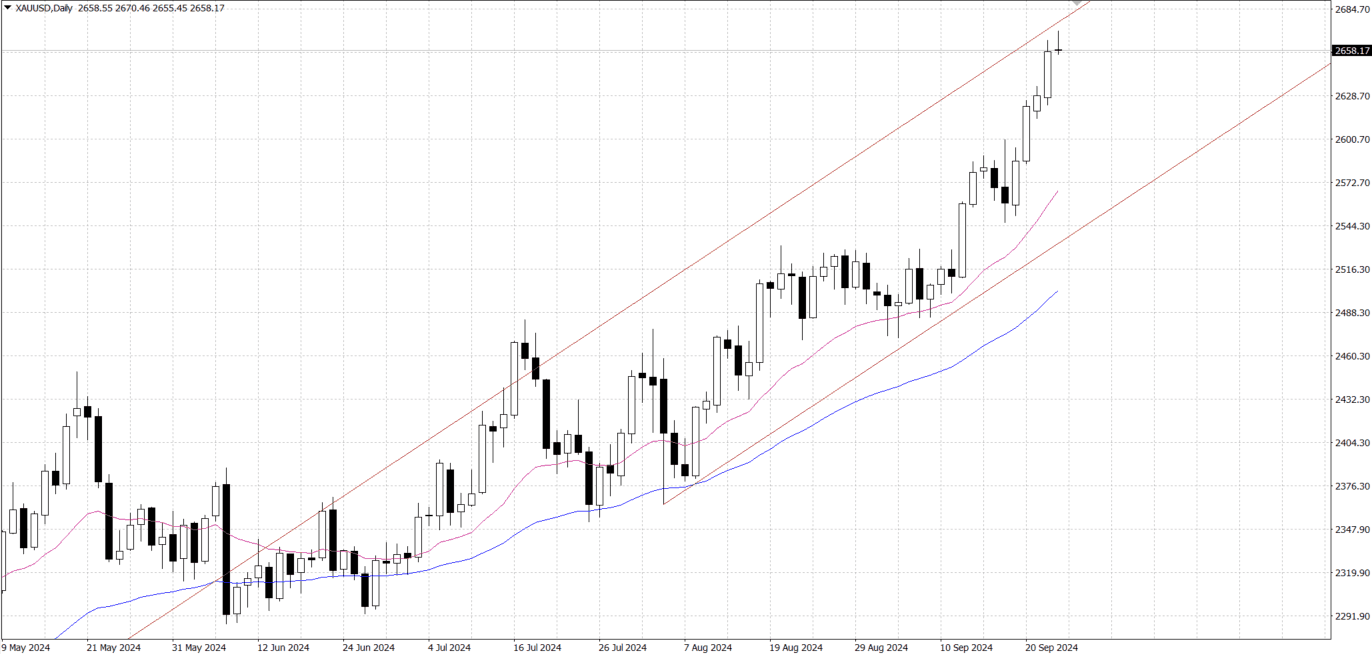 Gold prices (XAU/USD) continued to firm this week, reaching record highs, largely driven by dovish Fed expectations and geopolitical tensions. Market expectations that the Federal Reserve will cut interest rates by another 50 basis points in November have undermined the dollar's ability to rebound, lending support to non-yielding gold. In addition, the intensification of conflicts in the Middle East, especially the Israeli air strikes on Lebanon, further boosted the demand for safe haven assets. Despite the optimism sparked by new stimulus measures in China, the global economic slowdown and political uncertainty in the US continued to drive funds into gold, reinforcing the upward momentum.
